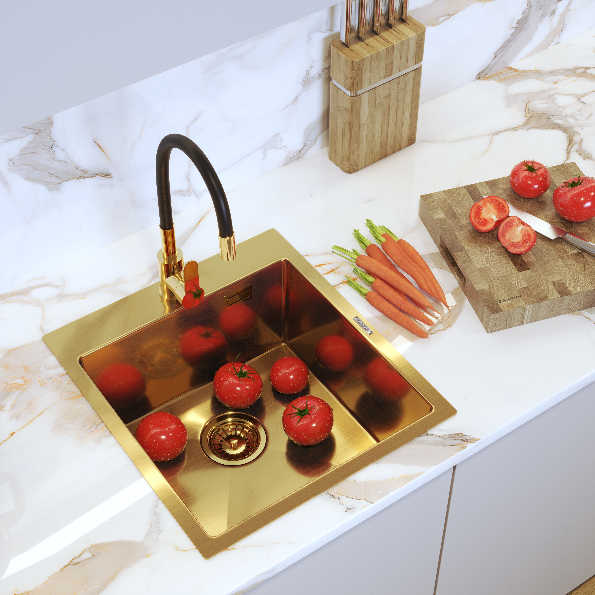 0 OPINII PENTRU Chiuvetă bucătărie inox o cuvă aurie fără picurător + sifon Silvo 45x50