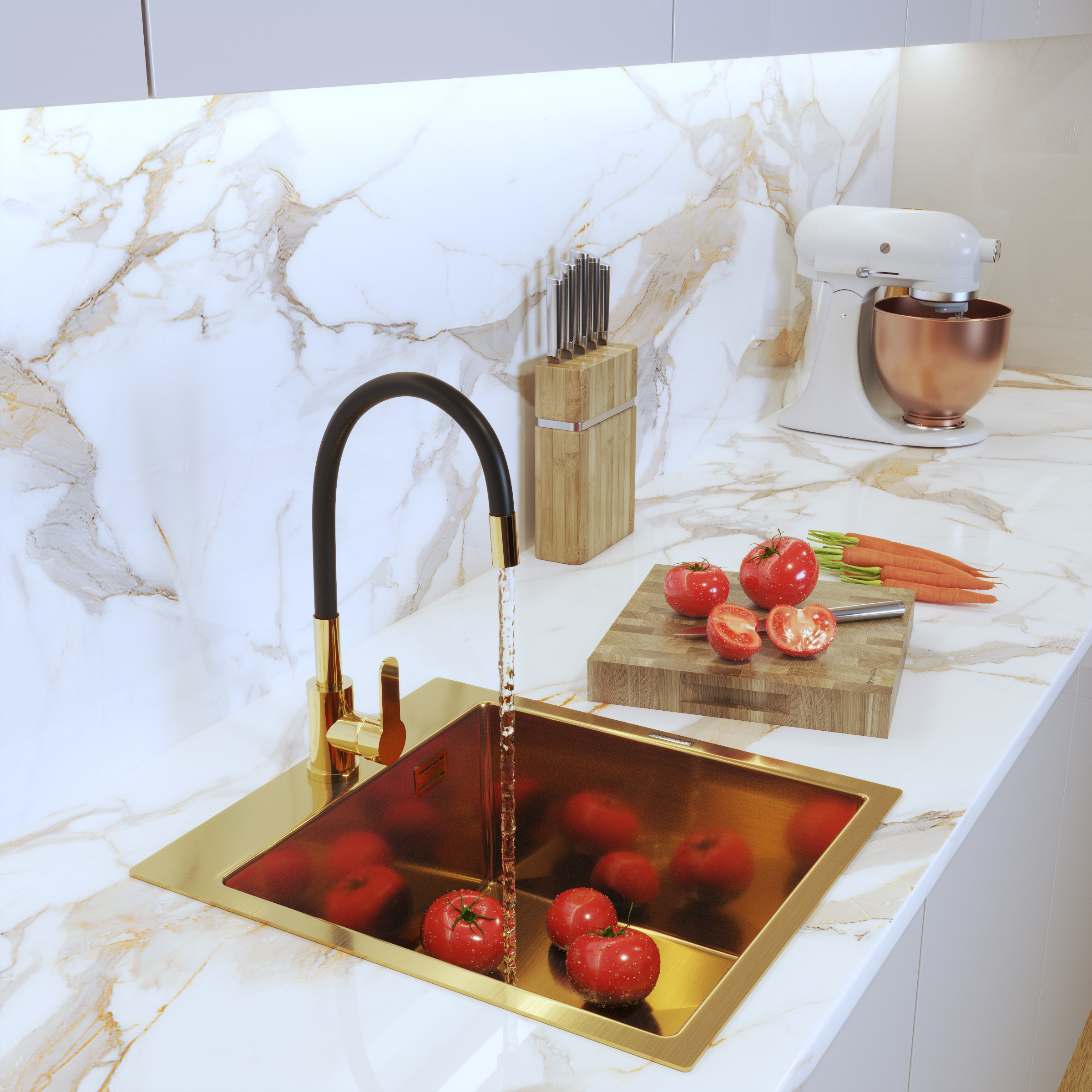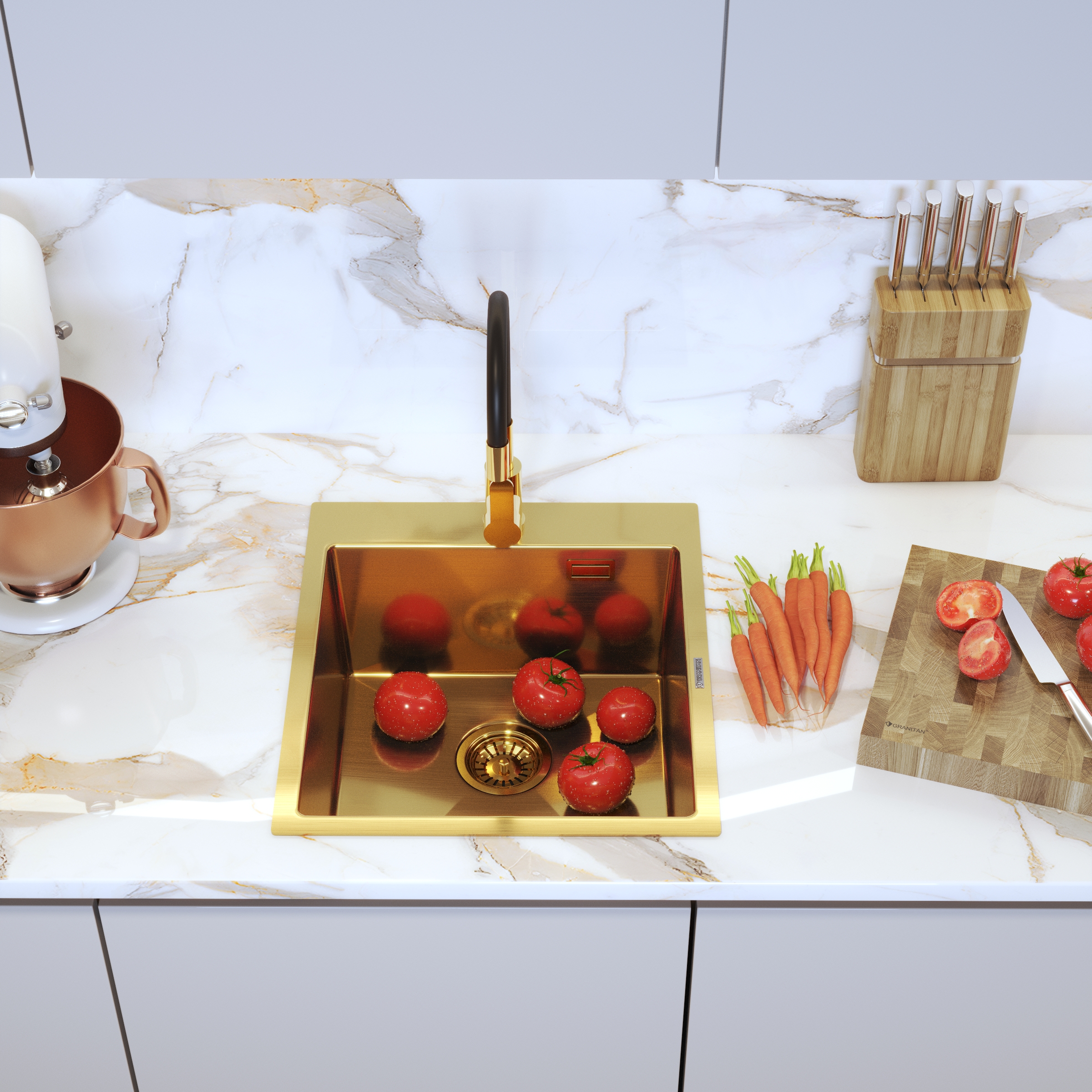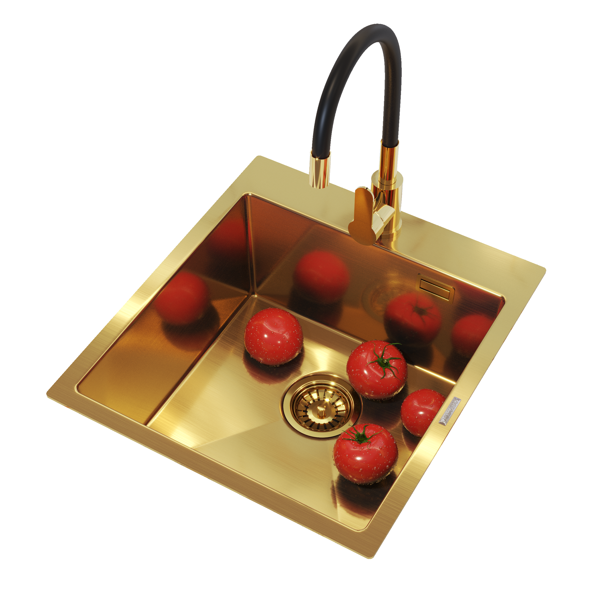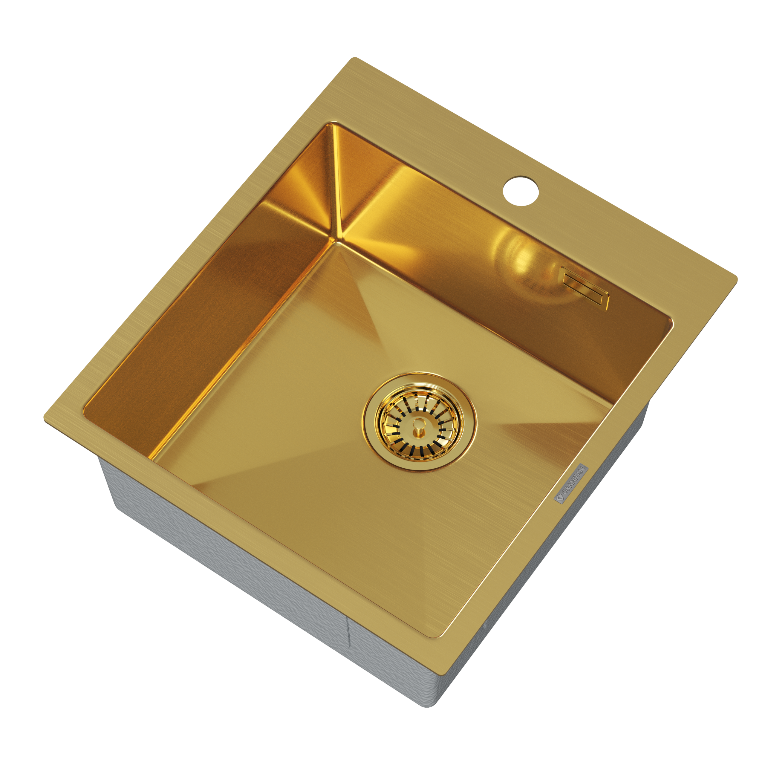 Chiuvetă bucătărie inox o cuvă aurie fără picurător + sifon Silvo 45x50
