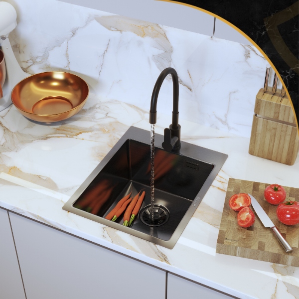 Culoarea elegantă face ca această chiuvetă să se potrivească în bucătării cu design minimalist, industrial sau clasic.