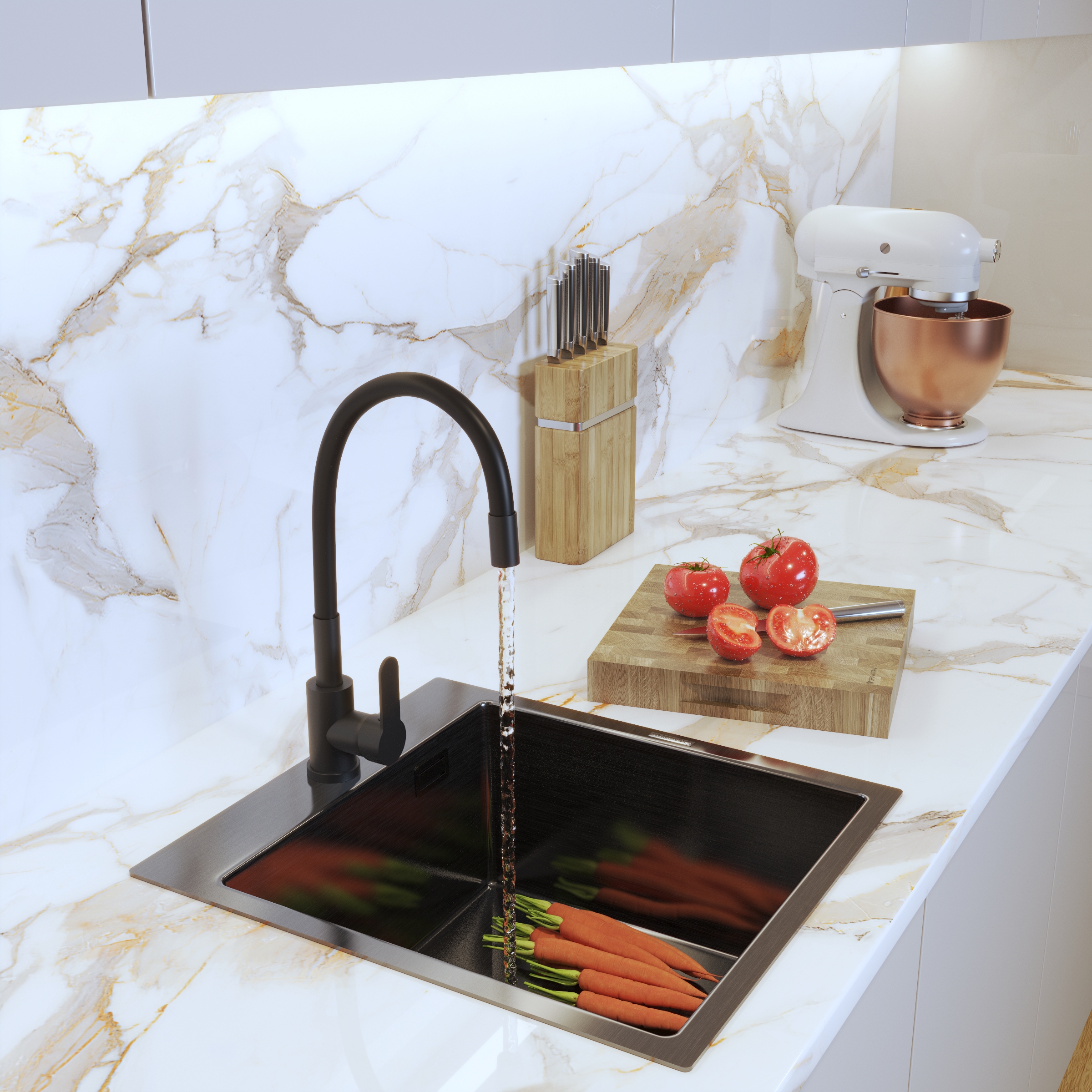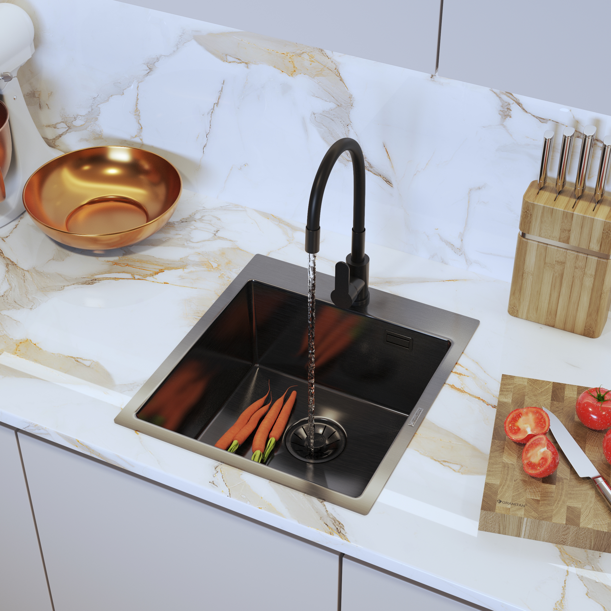 Culoarea elegantă face ca chiuveta să se potrivească în bucătării în stil minimalist, industrial sau clasic.