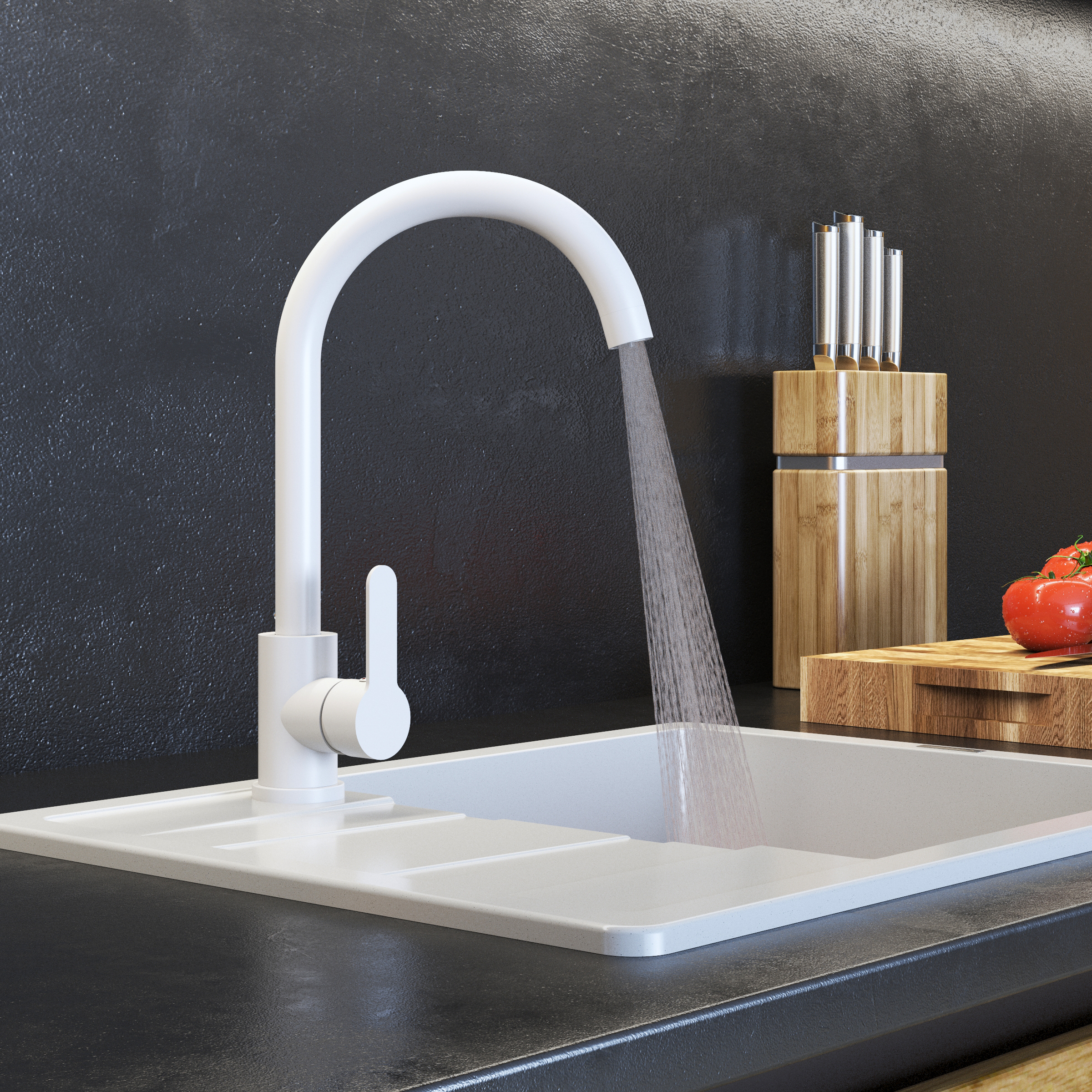 Baterie clasică de bucătărie, care prin designul său minimalist completează orice spațiu de bucătărie. Forma sa simplă nu copleșește interiorul și creează un mediu unitar, dar totuși elegant.