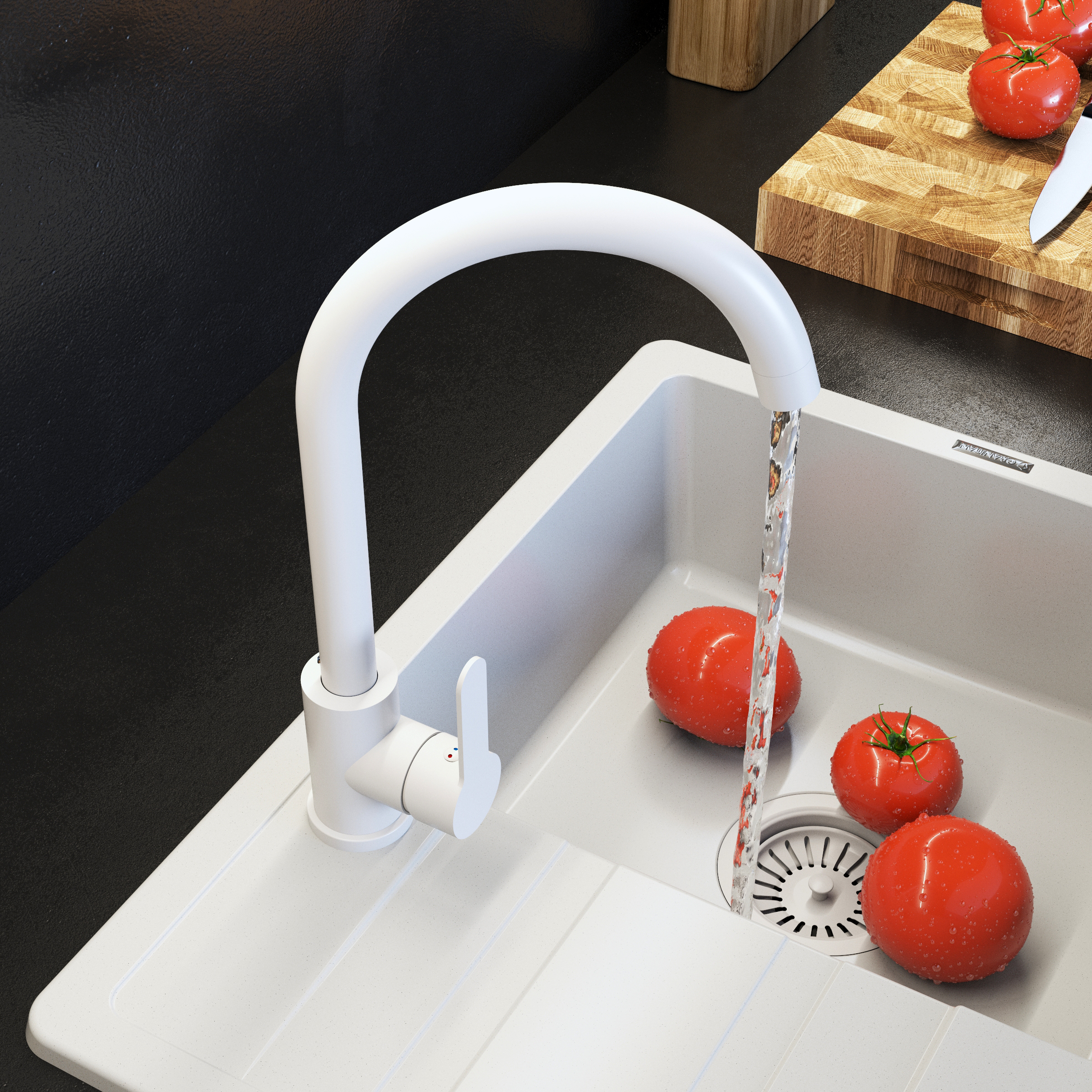 Baterie Bucătărie Gât Rotunjit Prestige Plus Albă Robinet
