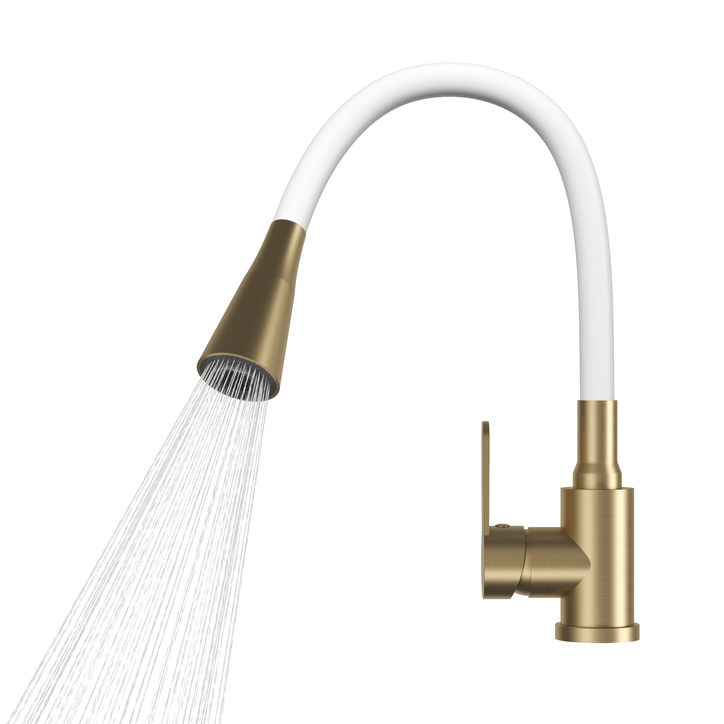 - Baterie de bucătărie FLEXO (alb și auriu satinat, baterie înaltă montată pe blat)