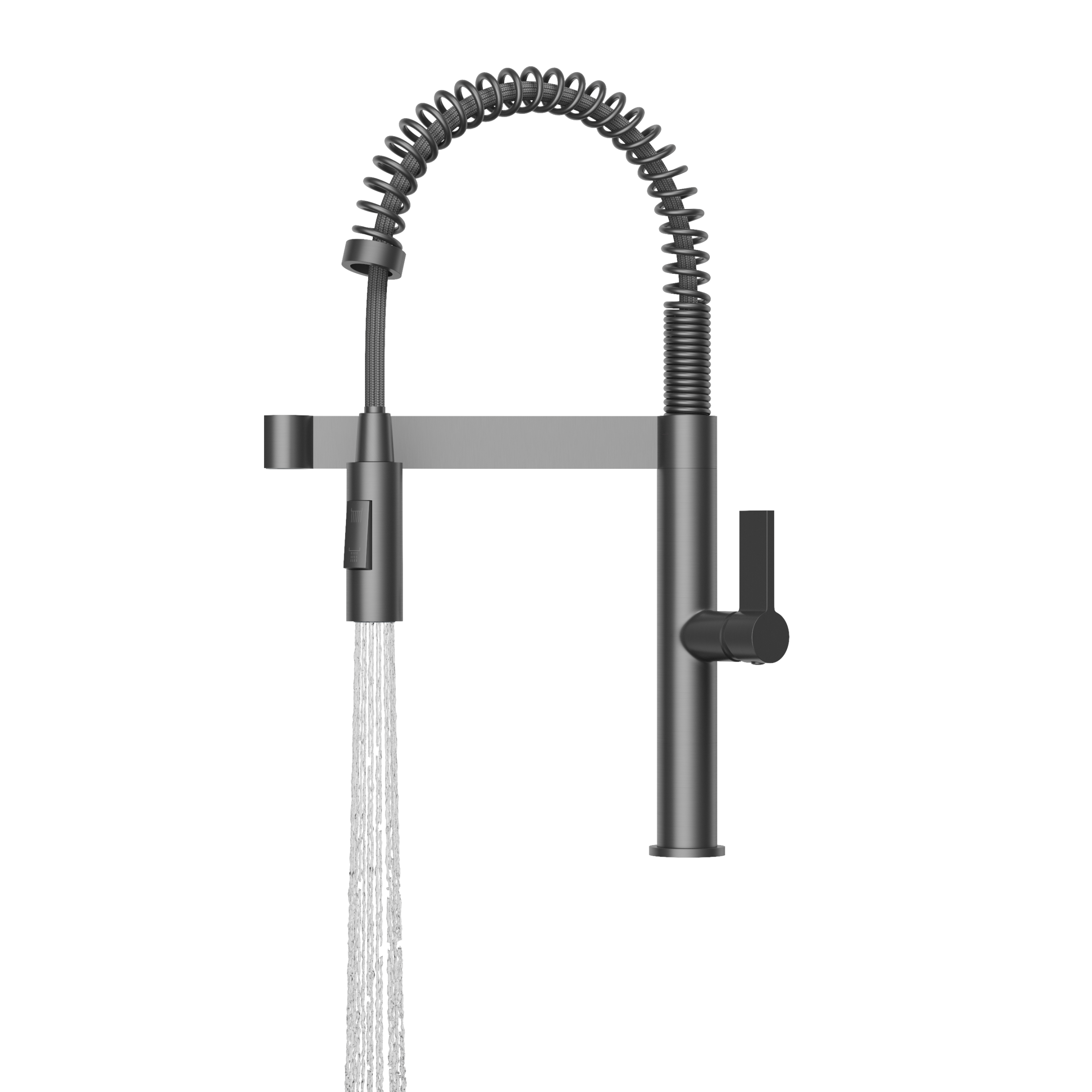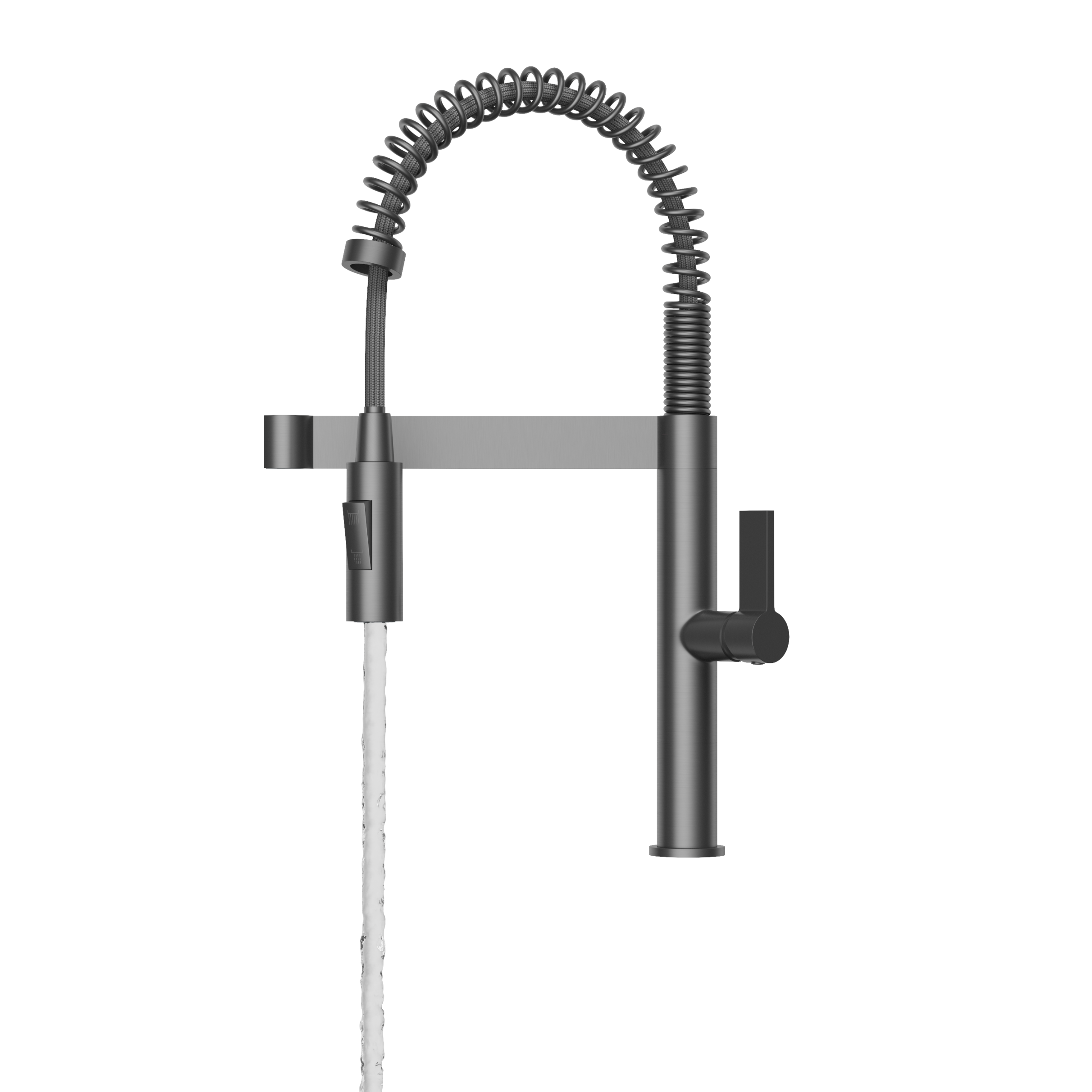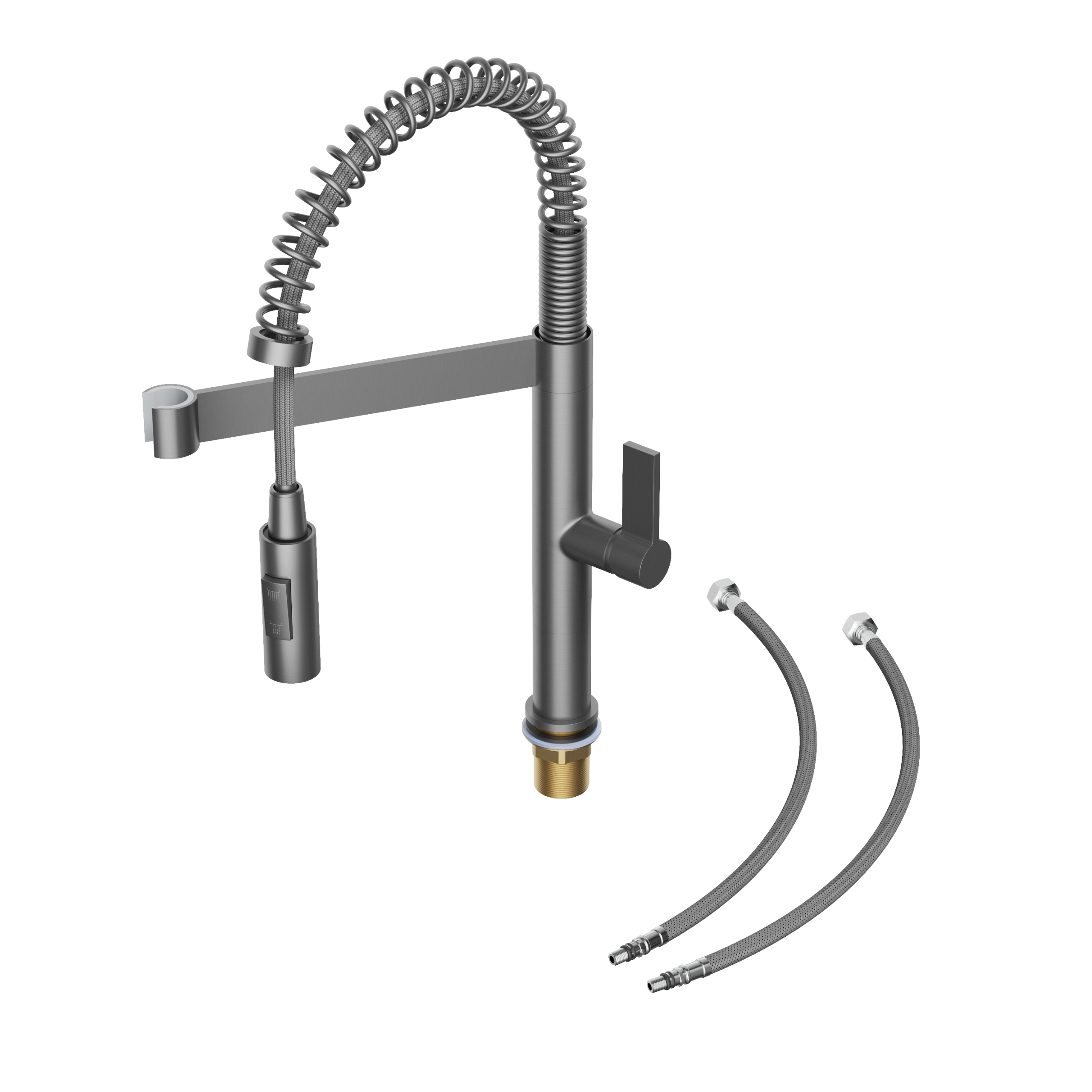 Baterie bucătărie spiralată cu duș extractibil înalt gun grey Elara