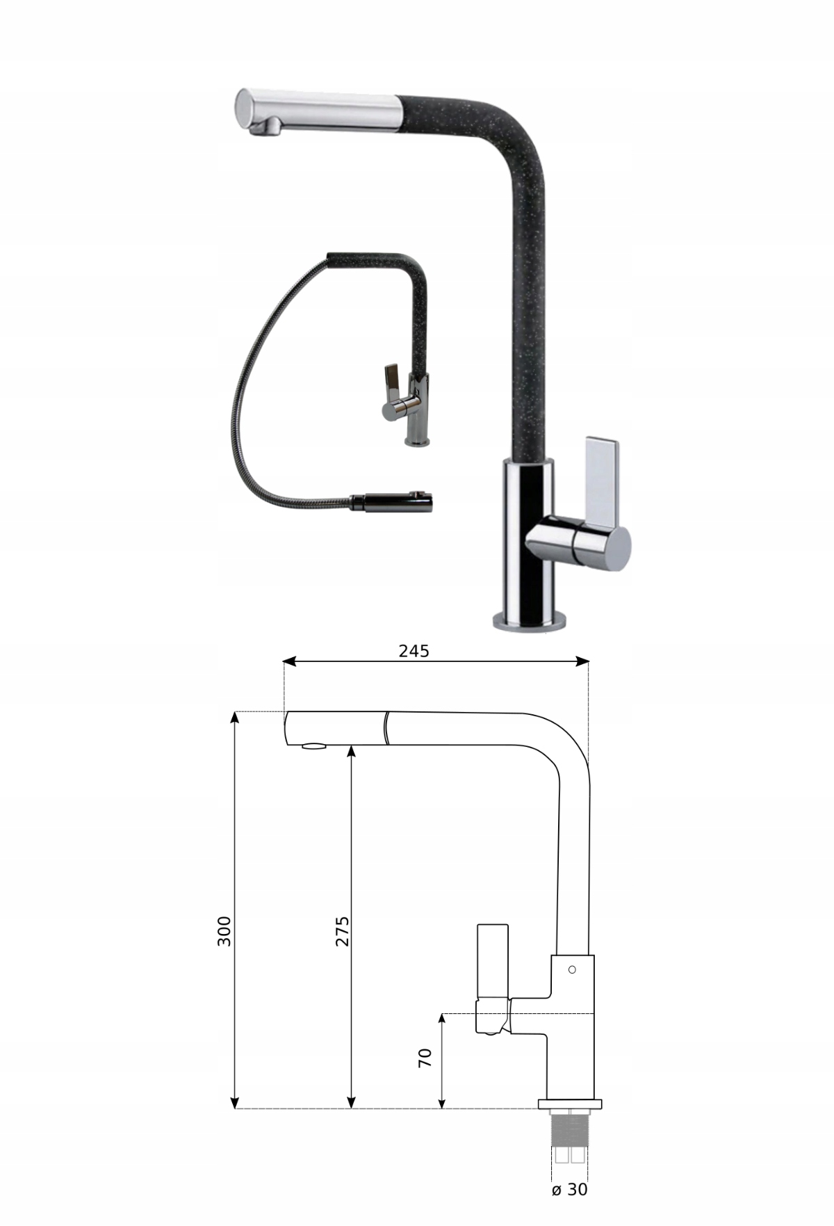 pentru configurația cu 3 orificii, lățimea minimă a suportului este de 60 cm (dulapuri de la 60 cm sau mai mari)