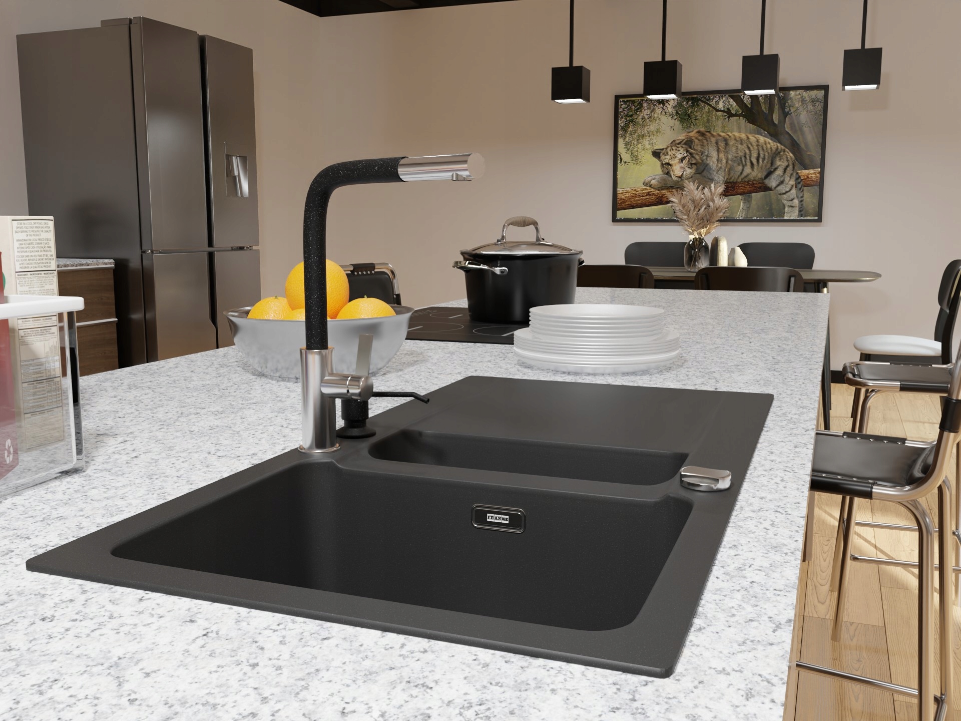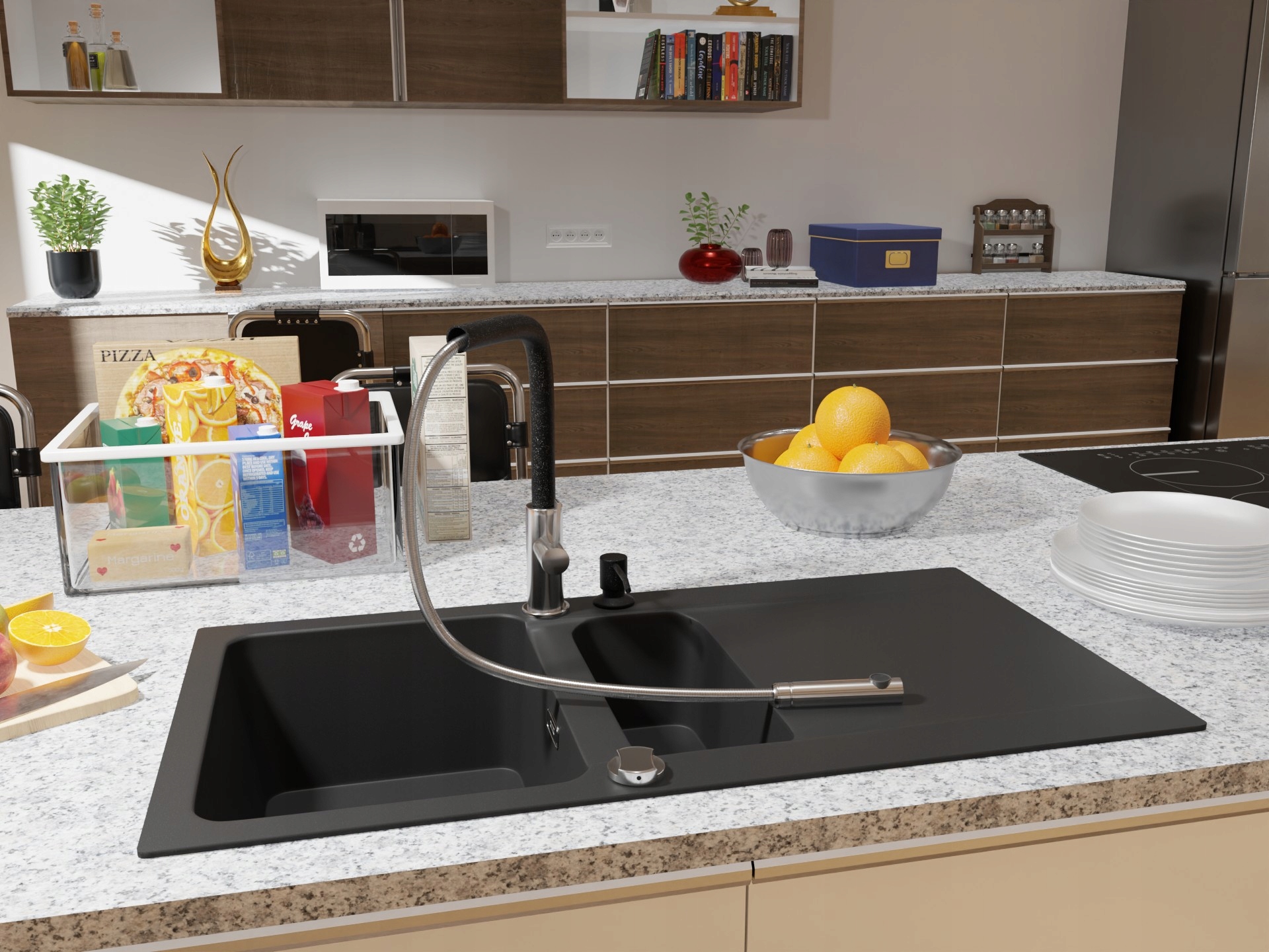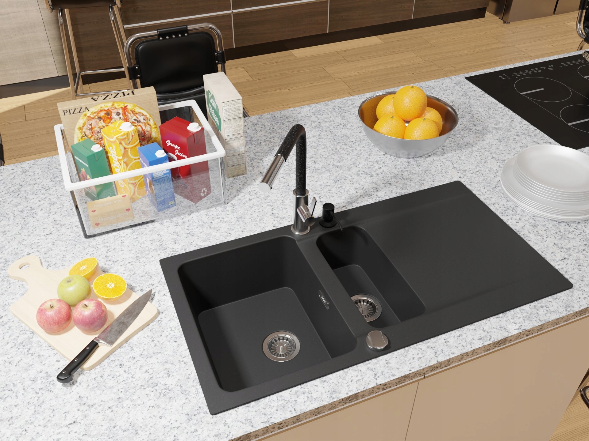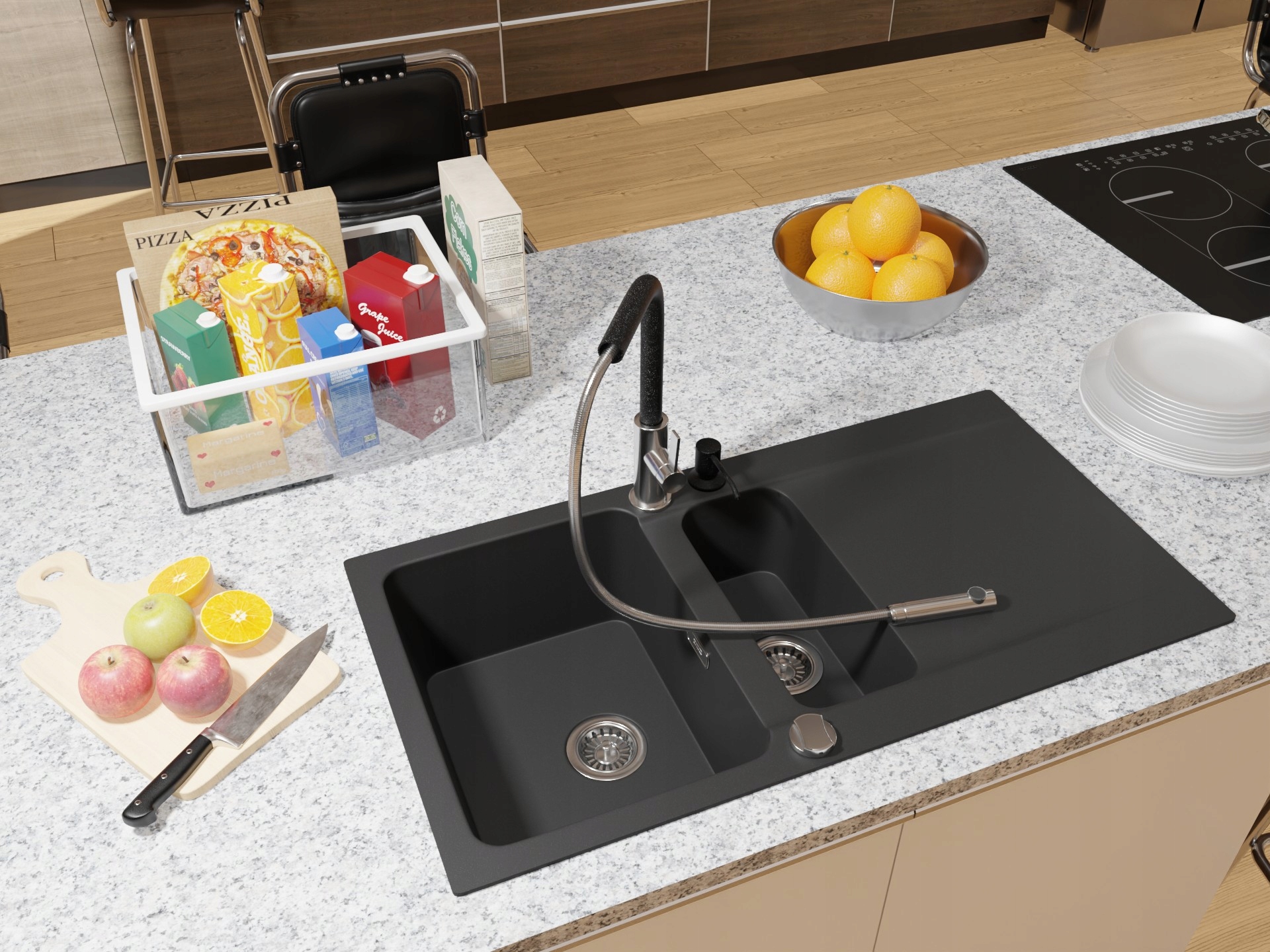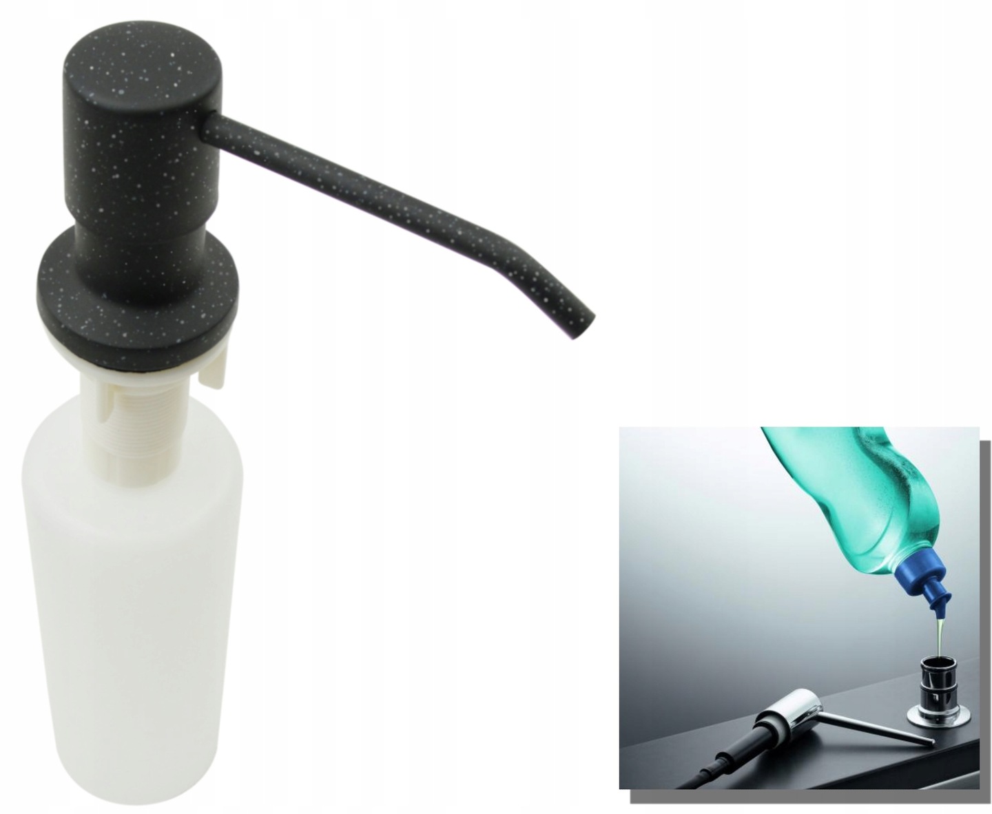 Se poate monta în chiuveta de bucătărie sau în blat. Capacitatea recipientului pentru lichid este de 350 ml