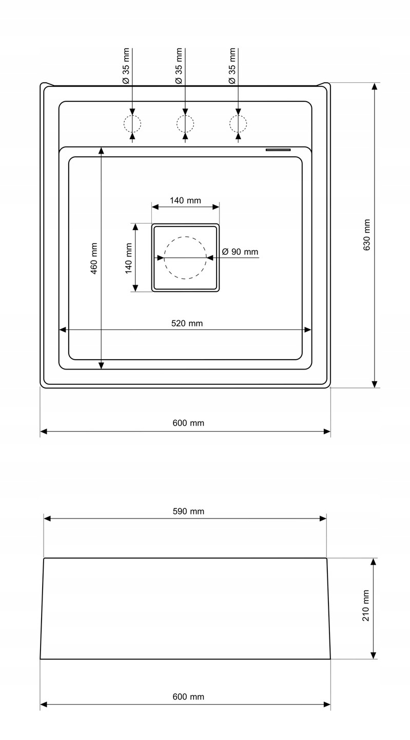 ✅modelul nu are găuri pre-forate, există posibilitatea de a fora 3 găuri pentru, de exemplu, robinet, dispenser.