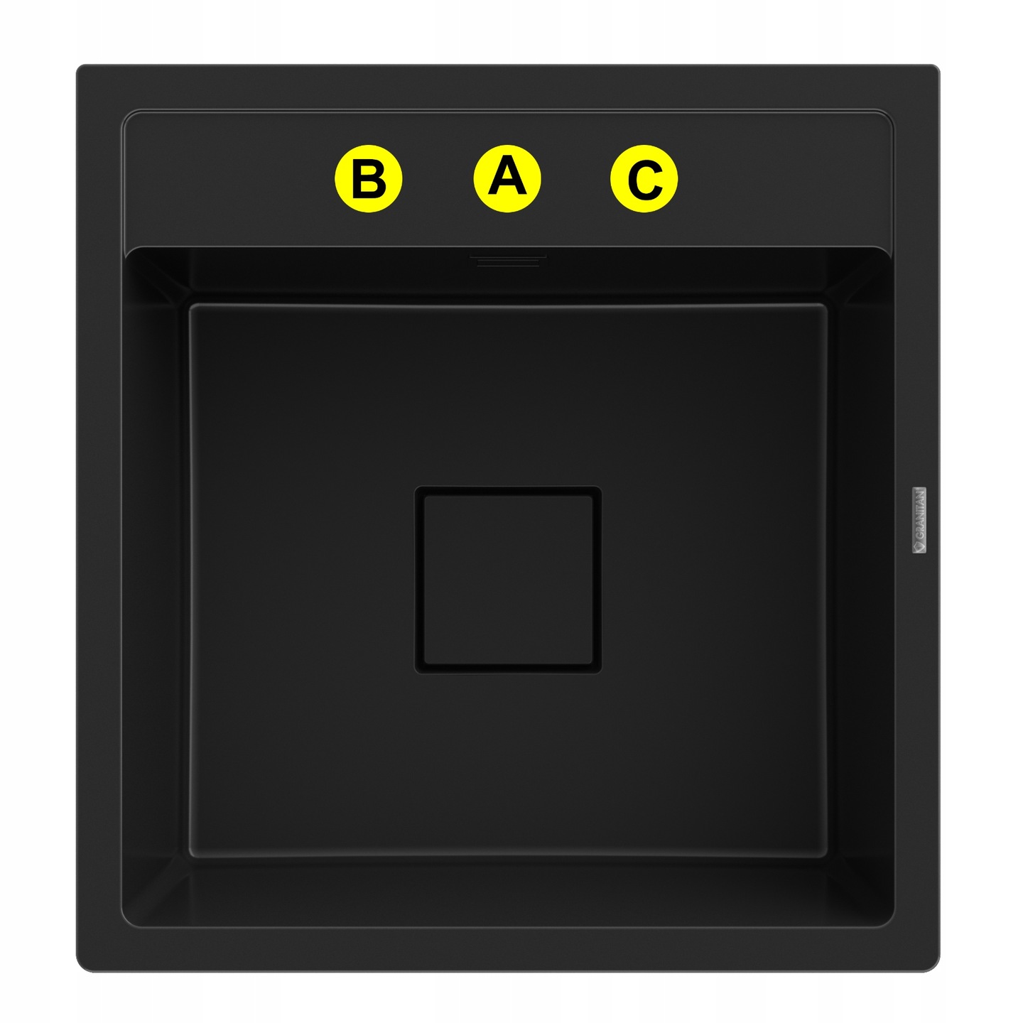 Chiuveta este livrată cu 2 găuri predefinite pentru baterie și dozator de detergent (A, C).