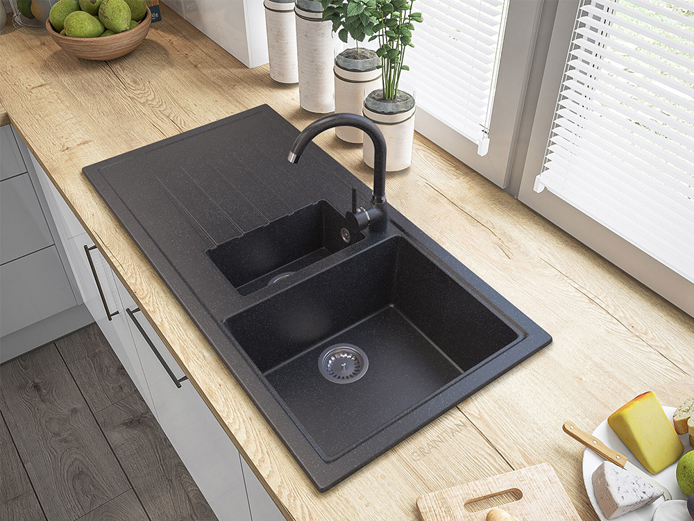 Oferim chiuvetă din granit cu una și jumătate cuve SOLARIS pentru dulapuri de la 60 cm,