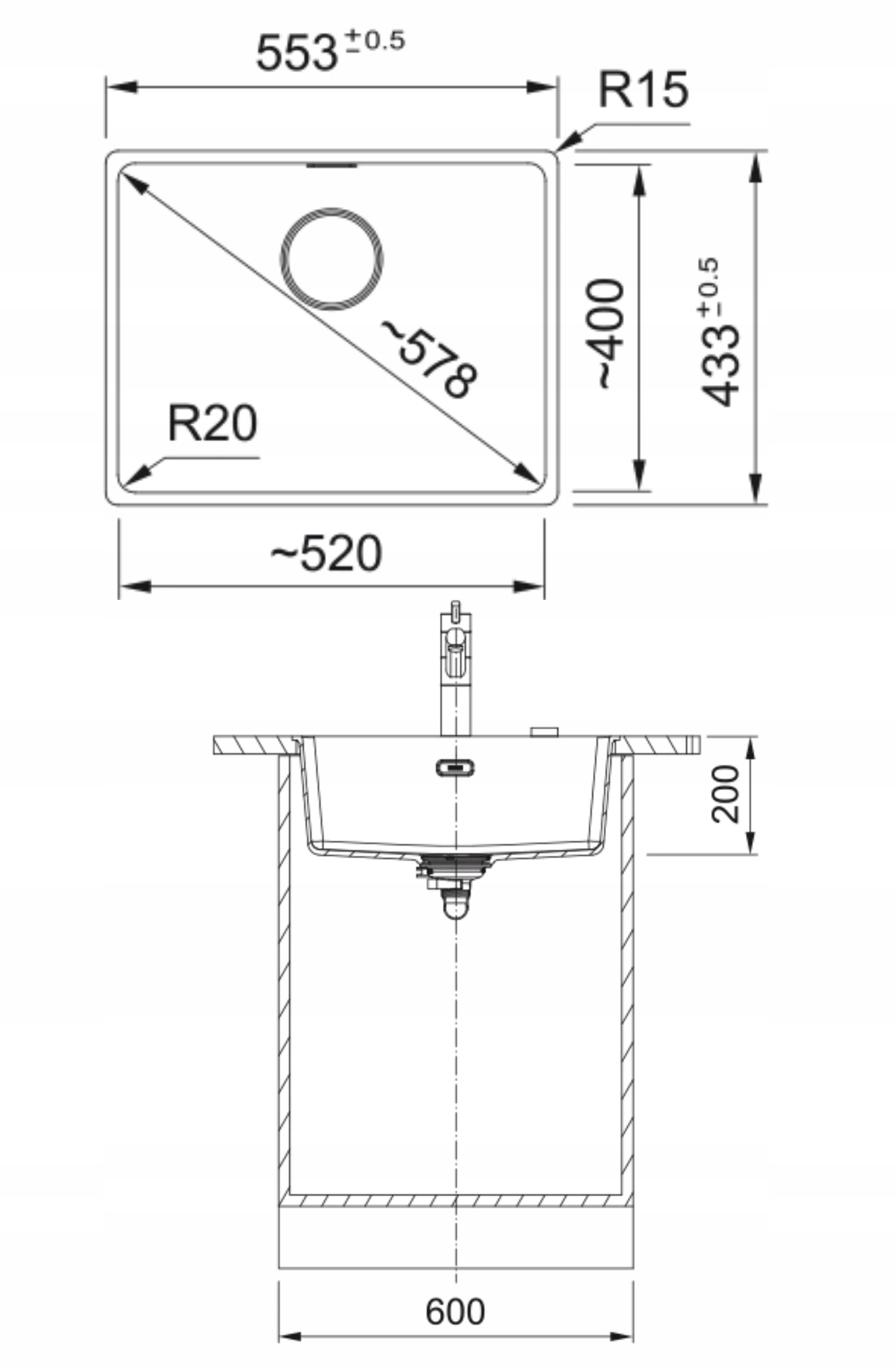 - Dimensiune exterioară: stânga-dreapta 553 mm