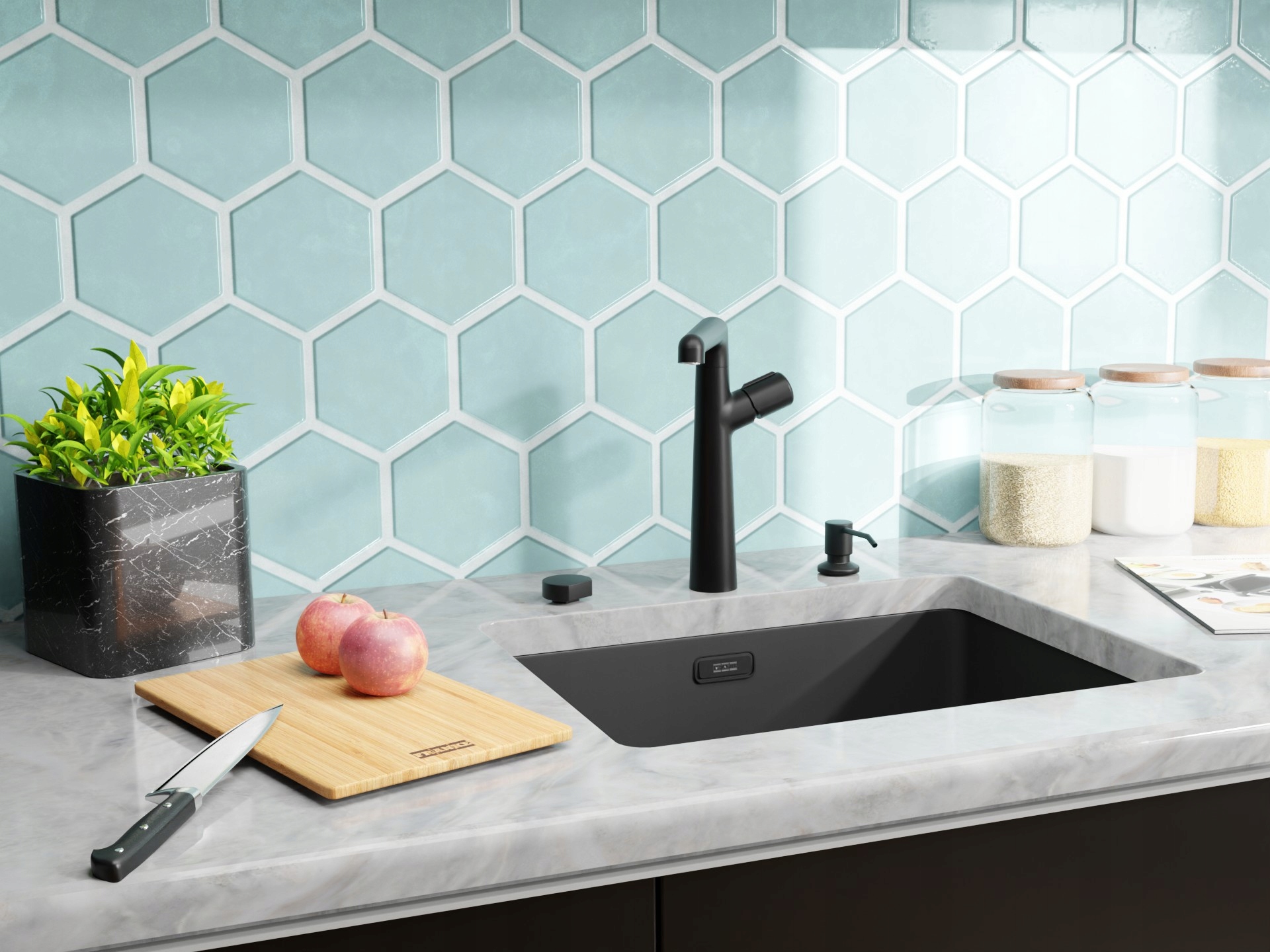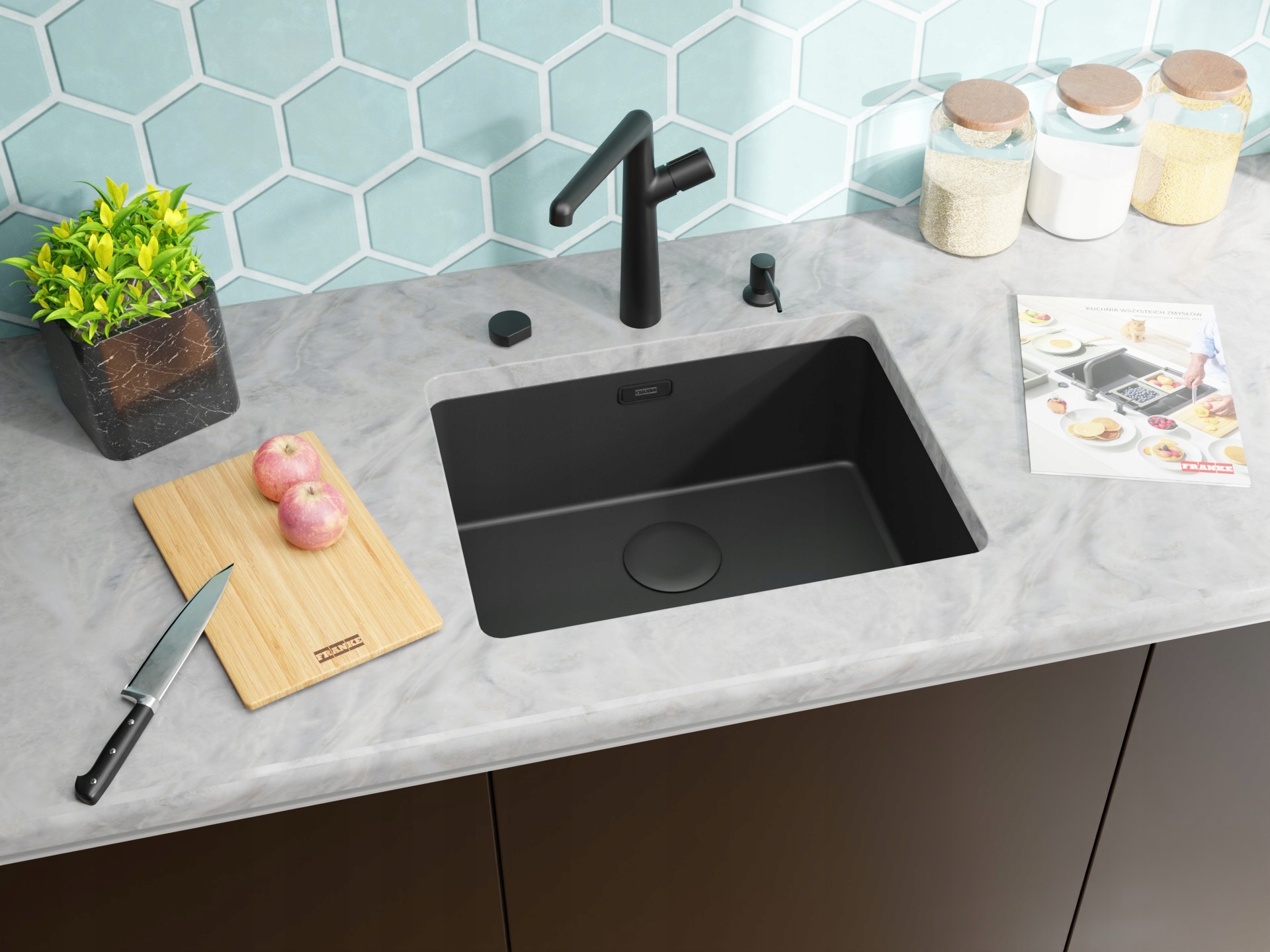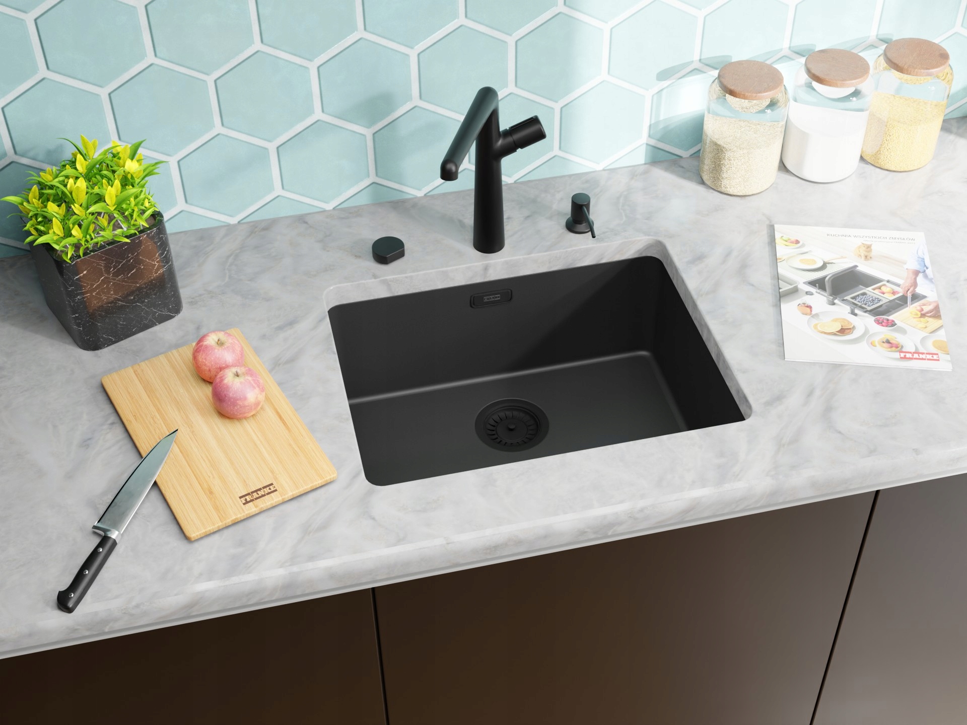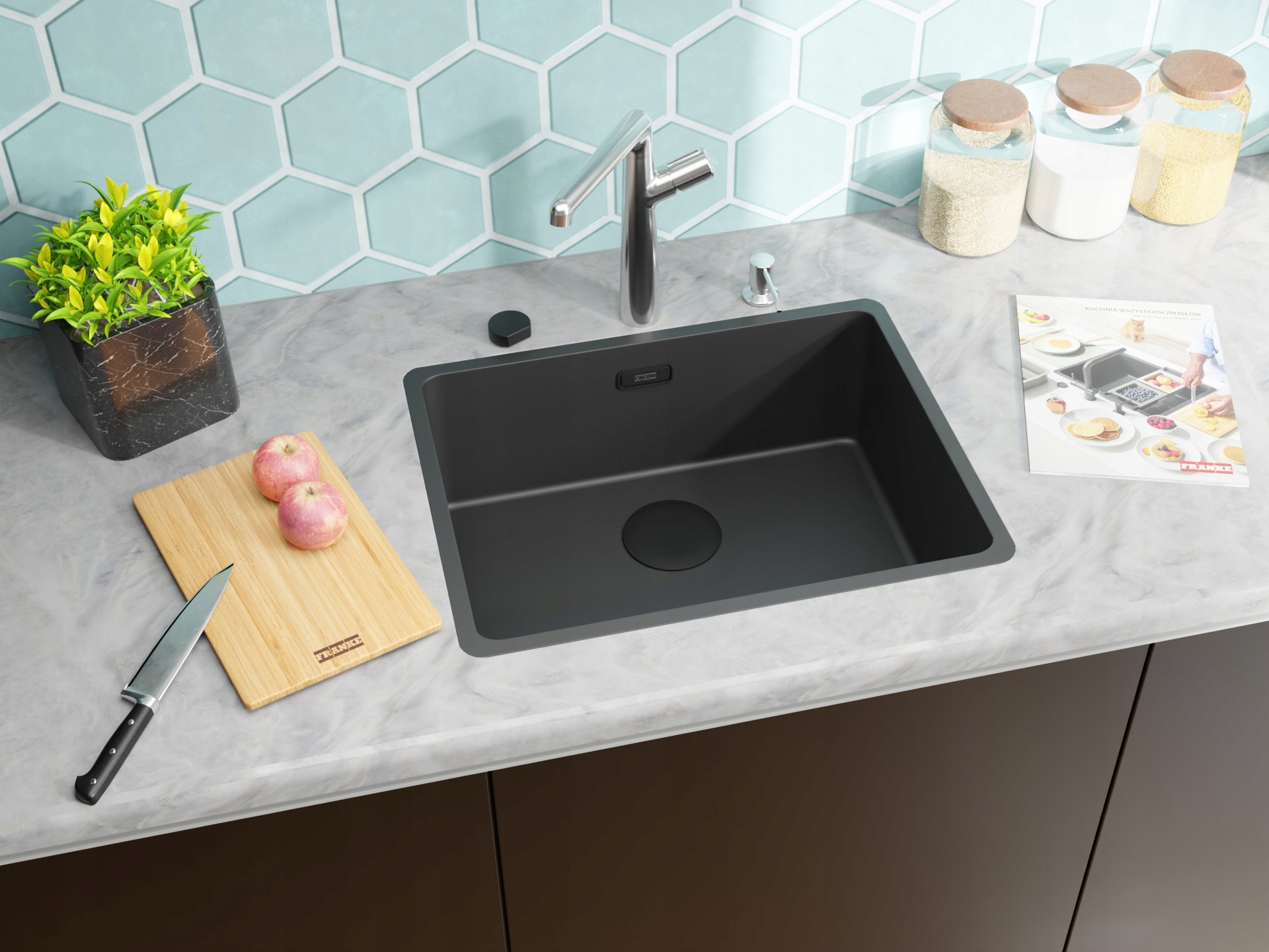Chiuveta din linia Maris MRG 210/110-52 poate fi montată în două moduri: încastrată sub blat sau la nivelul blatului. Chiuveta este fabricată din Fragranit+, compus din 80% granit natural. Datorită particulelor fine de granit, s-a obținut o chiuvetă perfect netedă și plăcută la atingere. Toate chiuvetele fragranit FRANKE sunt fabricate folosind tehnologia Sanitized?. Acestea conțin sticlă fosfatată cu adaos de argint care limitează dezvoltarea bacteriilor cu până la 99%. Mai mult decât atât, chiuvetele Fragranit+ sunt rezistente la zgârieturi, impacturi și pete, iar culoarea lor nu se schimbă în timp. Sunt, de asemenea, rezistente la temperaturi ridicate pe termen scurt (până la 280°C timp de 15 secunde).