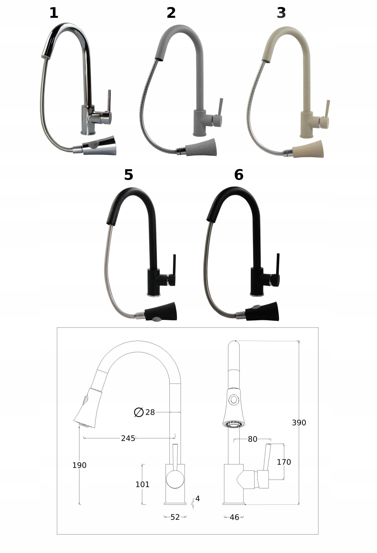 • înălțimea gurii de scurgere/perlatorului: 390 mm/ 190 mm