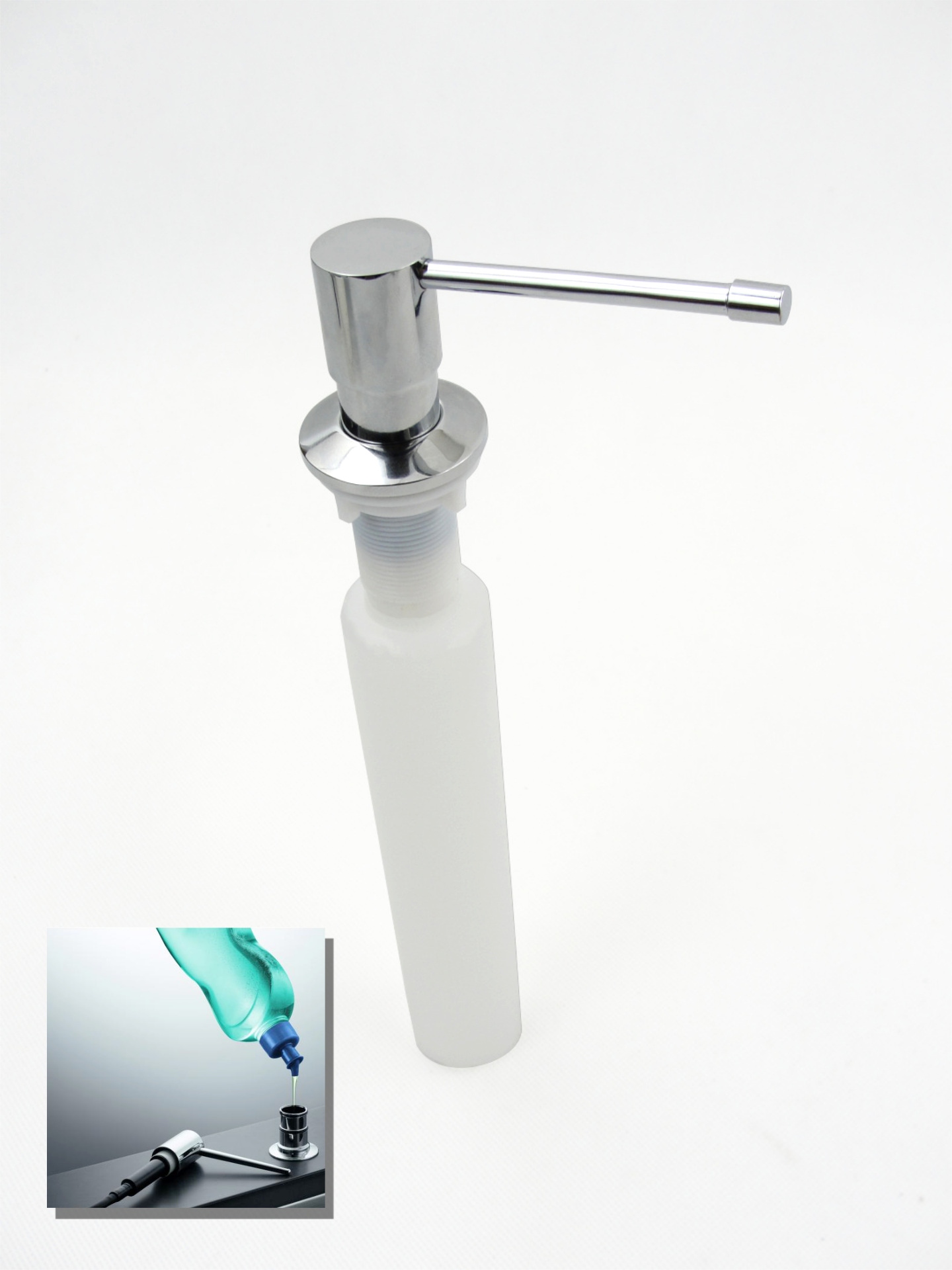 Dozatorul cu o capacitate de 250 ml este destinat săpunului lichid sau lichidului pentru spălat vase.  Dozatorul permite reumplerea lichidului de sus, fără a fi necesară scoaterea flaconului.