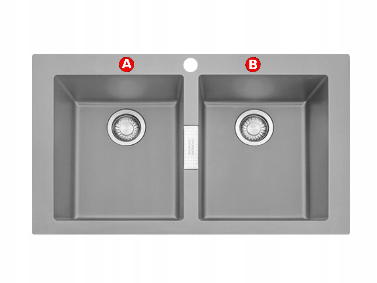 În chiuvetă este practicat din fabrică un singur orificiu central. Este posibilă realizarea a încă două orificii suplimentare, marcate ca punctele A și B