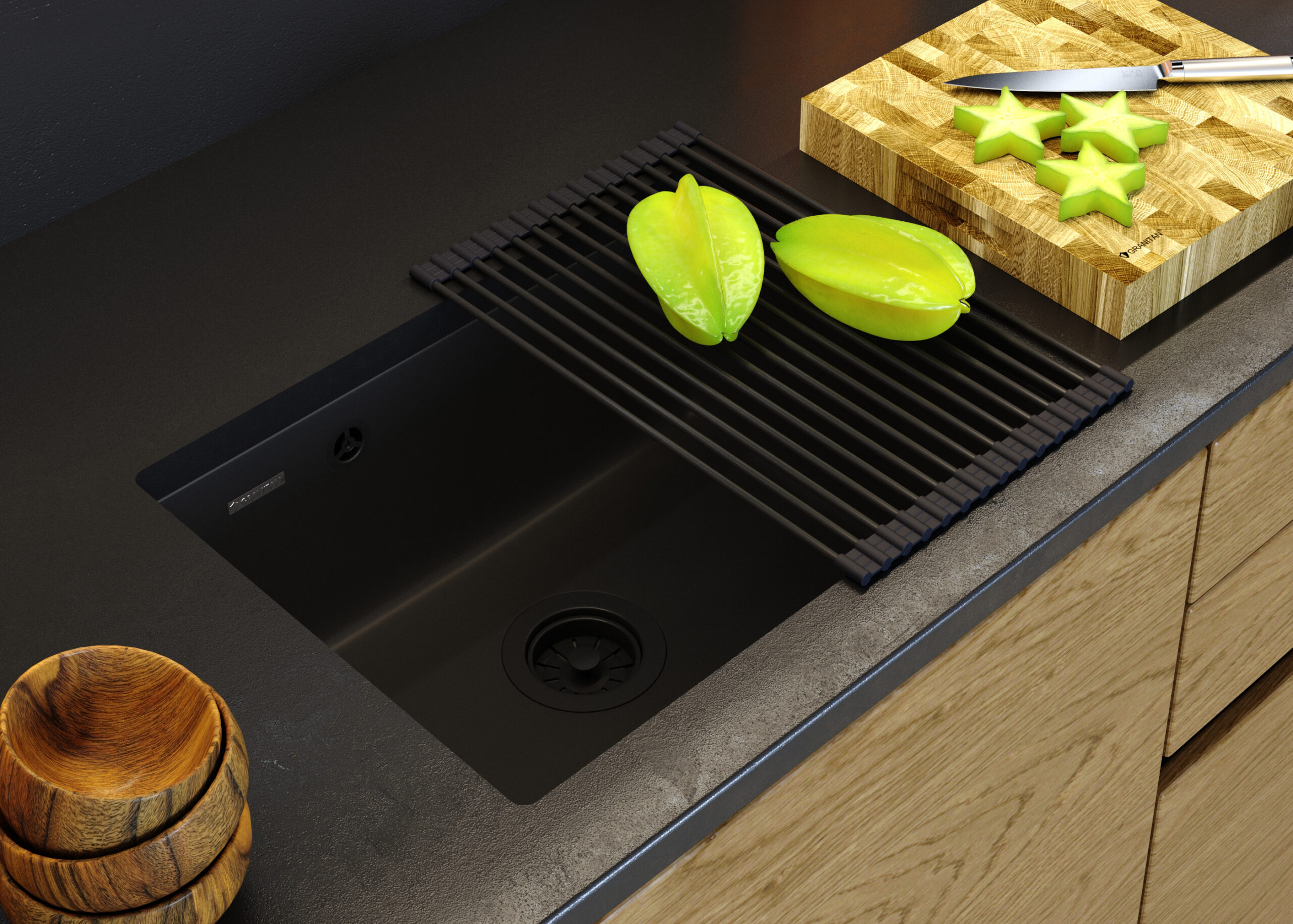 0 OPINII PENTRU Chiuvetă granit neagră sub blat + sifon + scurgător 60