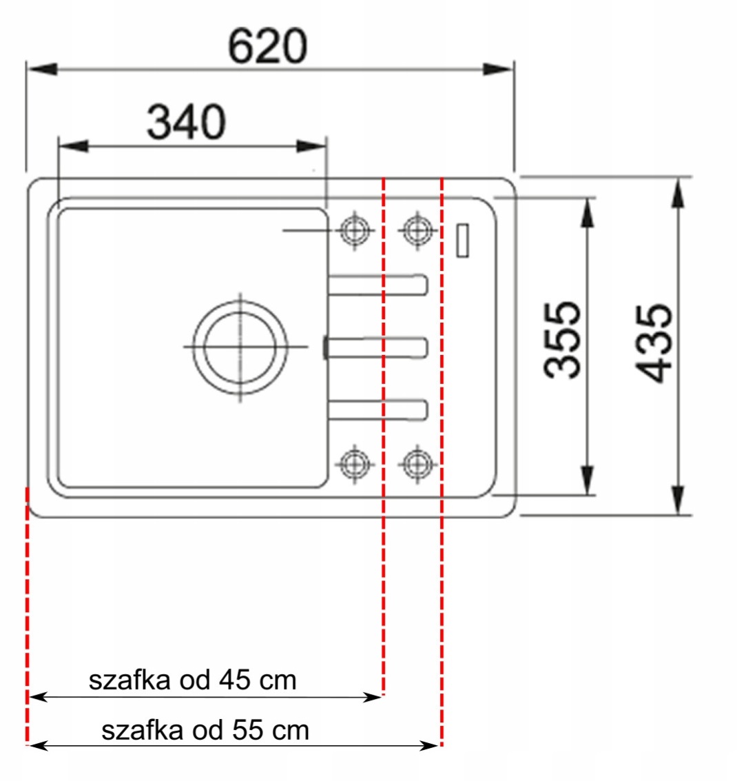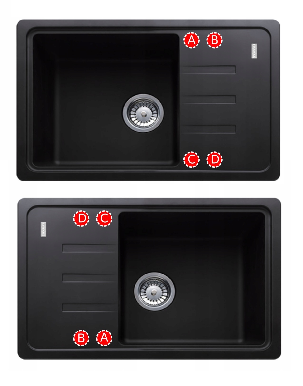 Găurile sunt frezate. Este posibilă forarea a până la 4 găuri Ø 35 în această chiuvetă.