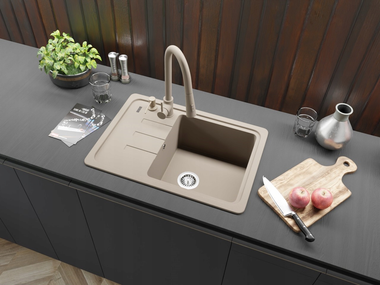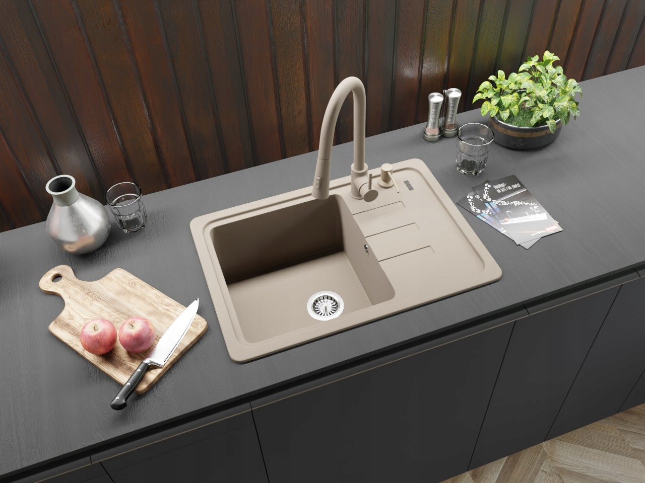Chiuveta Franke BSG 611-62 este un model realizat din compozit de granit de calitate superioară, care asigură o durabilitate excepțională și rezistență la deteriorări, temperaturi înalte și zgârieturi. Este o chiuvetă cu o singură cuvă și scurgător, perfectă atât pentru aranjamentele de bucătărie moderne, cât și pentru cele clasice.