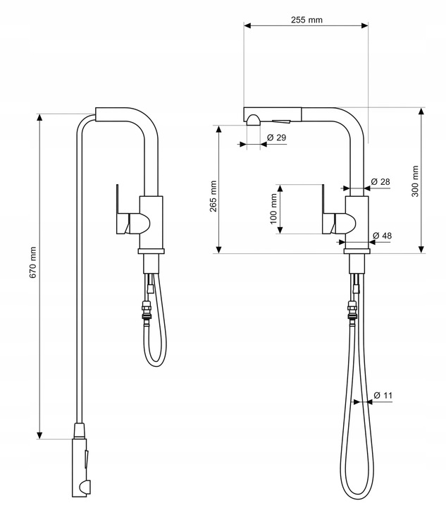 negru - BATERIE DE BUCĂTĂRIE CU DUZĂ EXTENSIBILĂ EBRO
