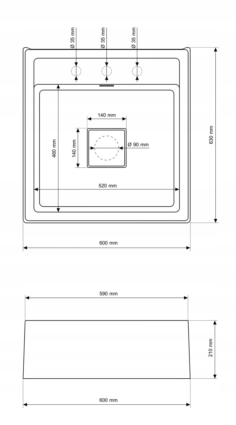 - modelul nu are găuri pre-găurite, dar există posibilitatea de a fora 3 găuri, destinate, de exemplu, pentru baterie sau dozator.