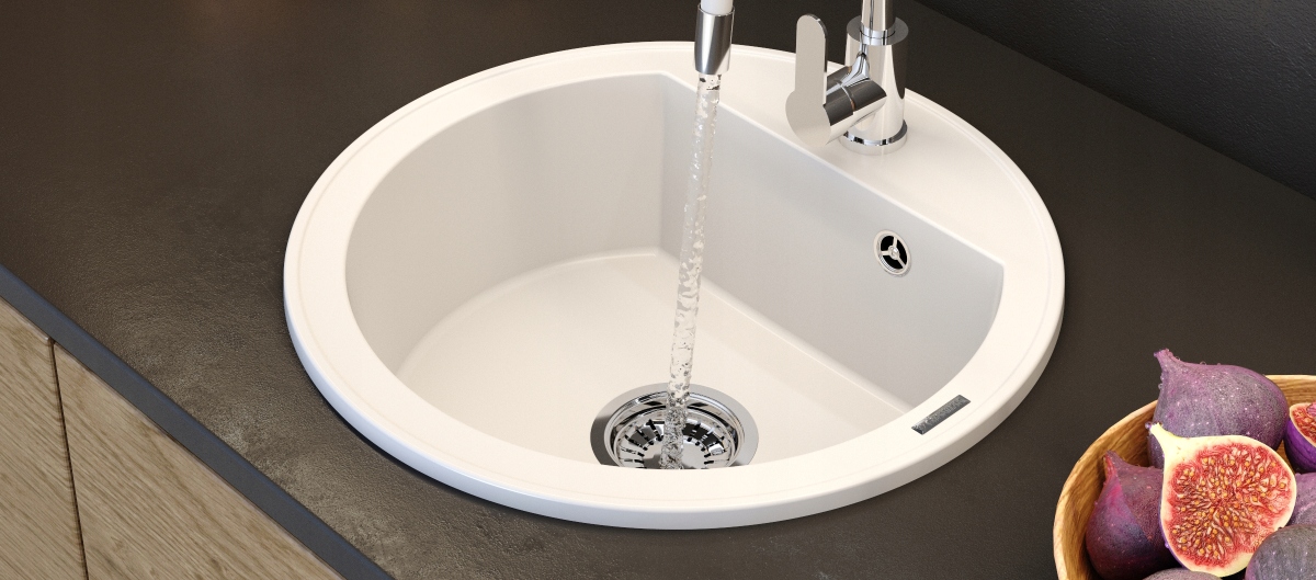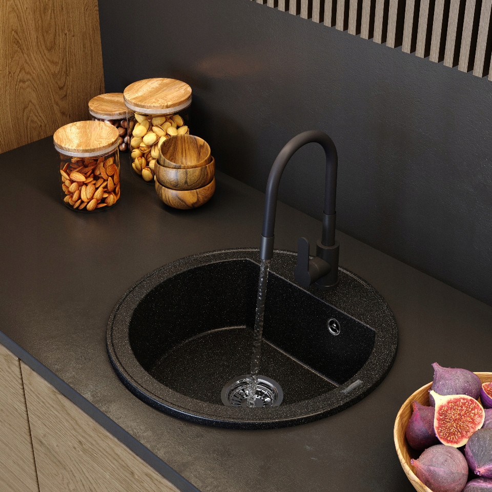 ARNO este o chiuvetă de bucătărie din granit de înaltă calitate, care se remarcă printr-un design rotund.