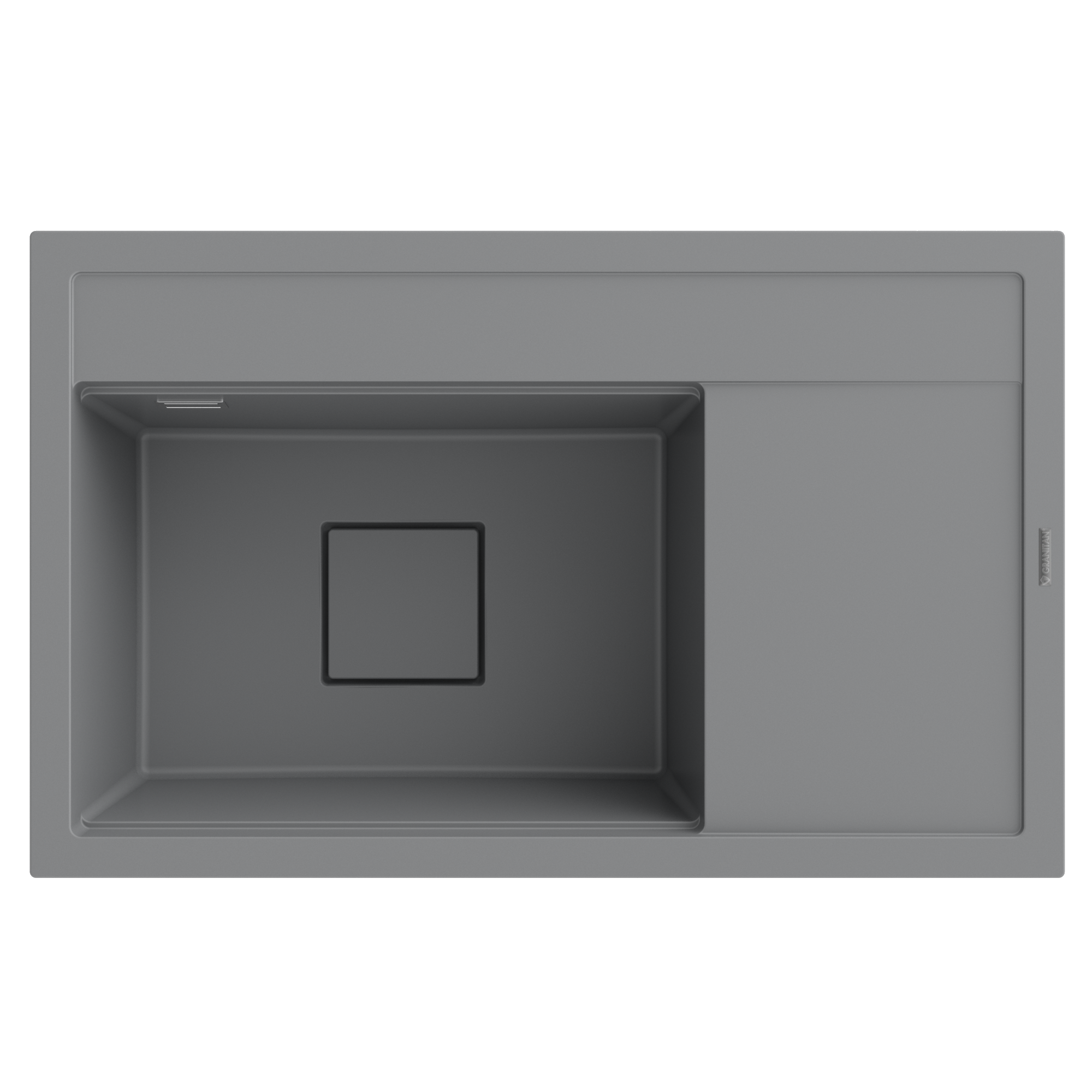 Rendo este o chiuvetă modernă din granit cu scurgător, a cărei suprafață este completată de un capac de design pentru scurgere.
