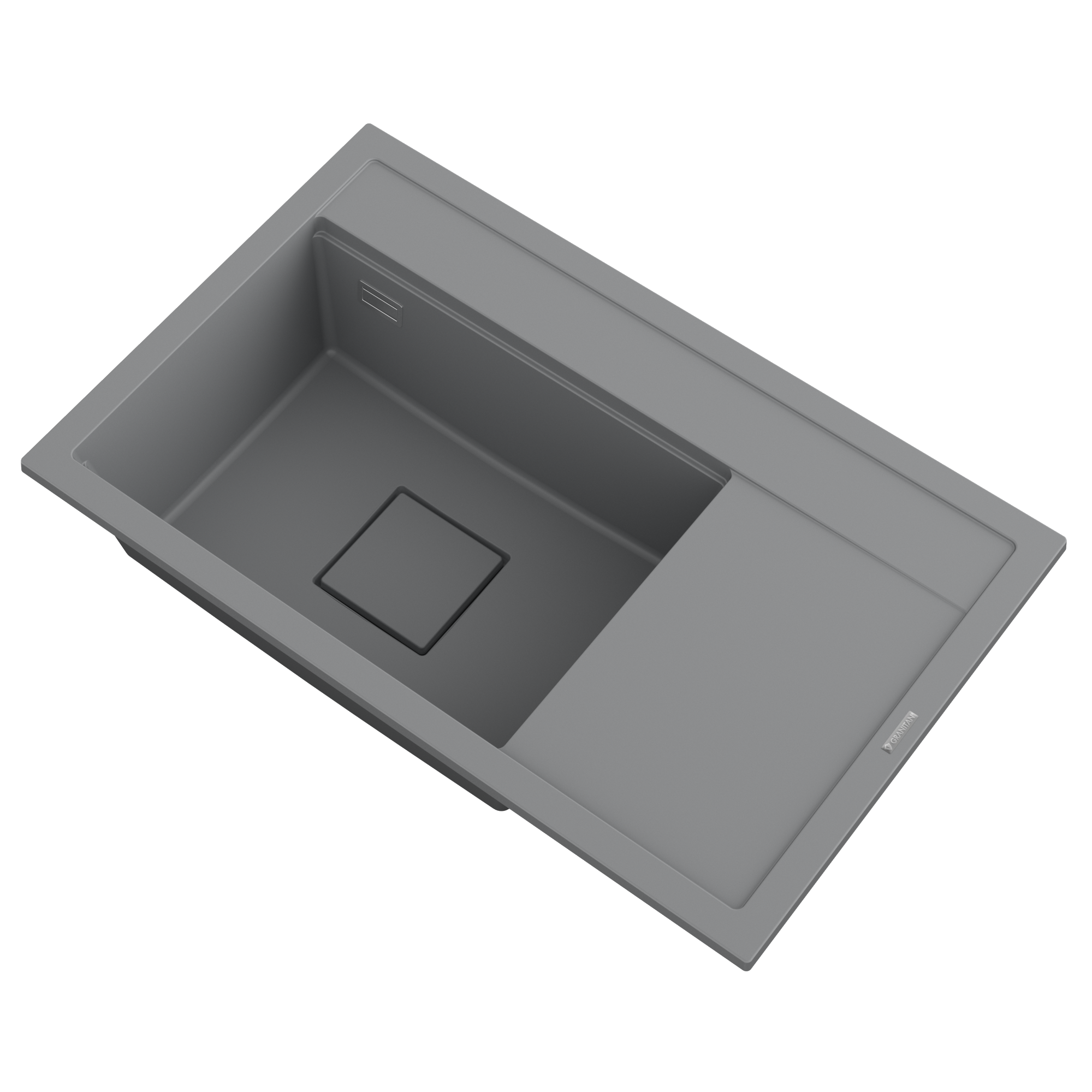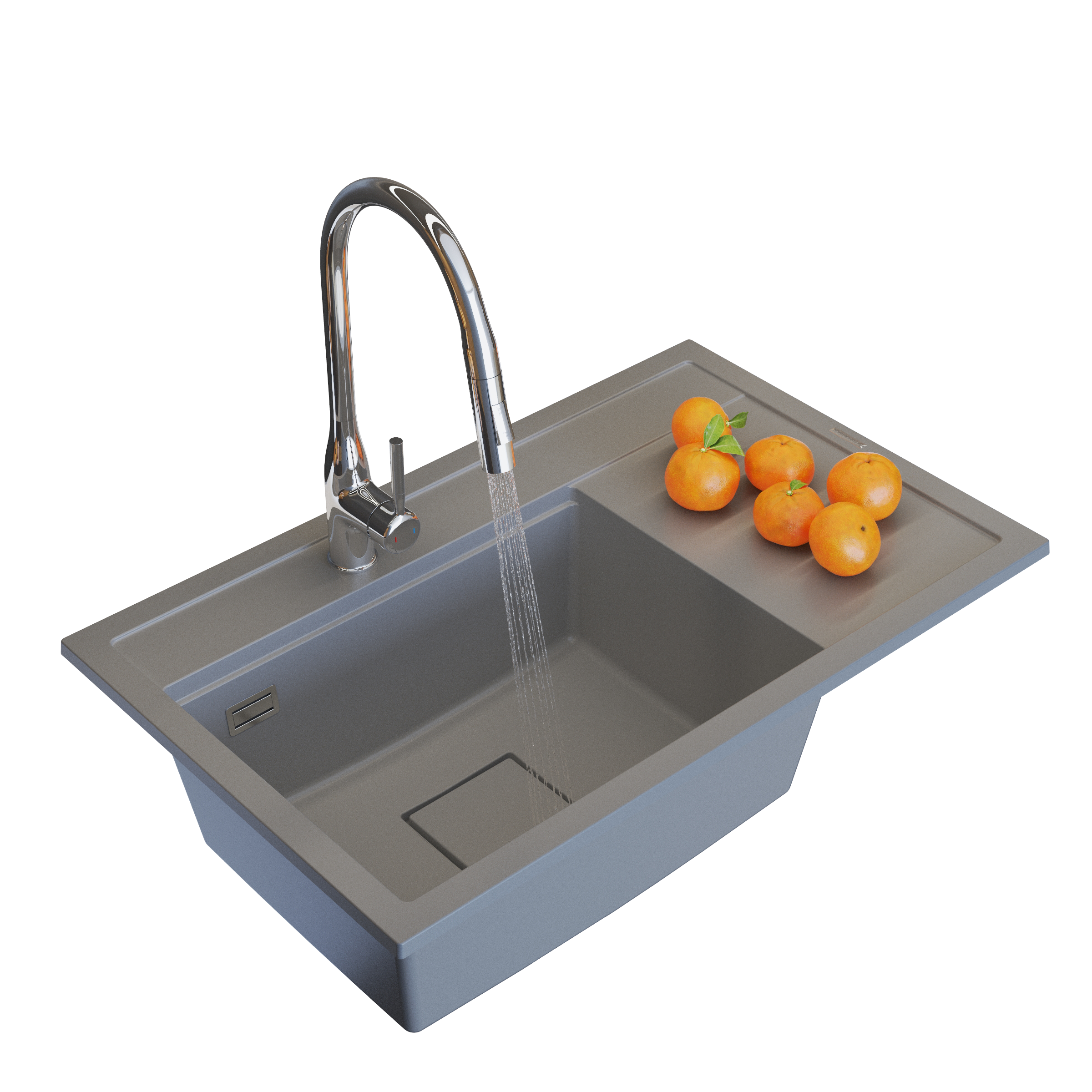 Rendo este o chiuvetă modernă din granit cu scurgător, a cărei suprafață este completată de un capac de design pentru scurgere.