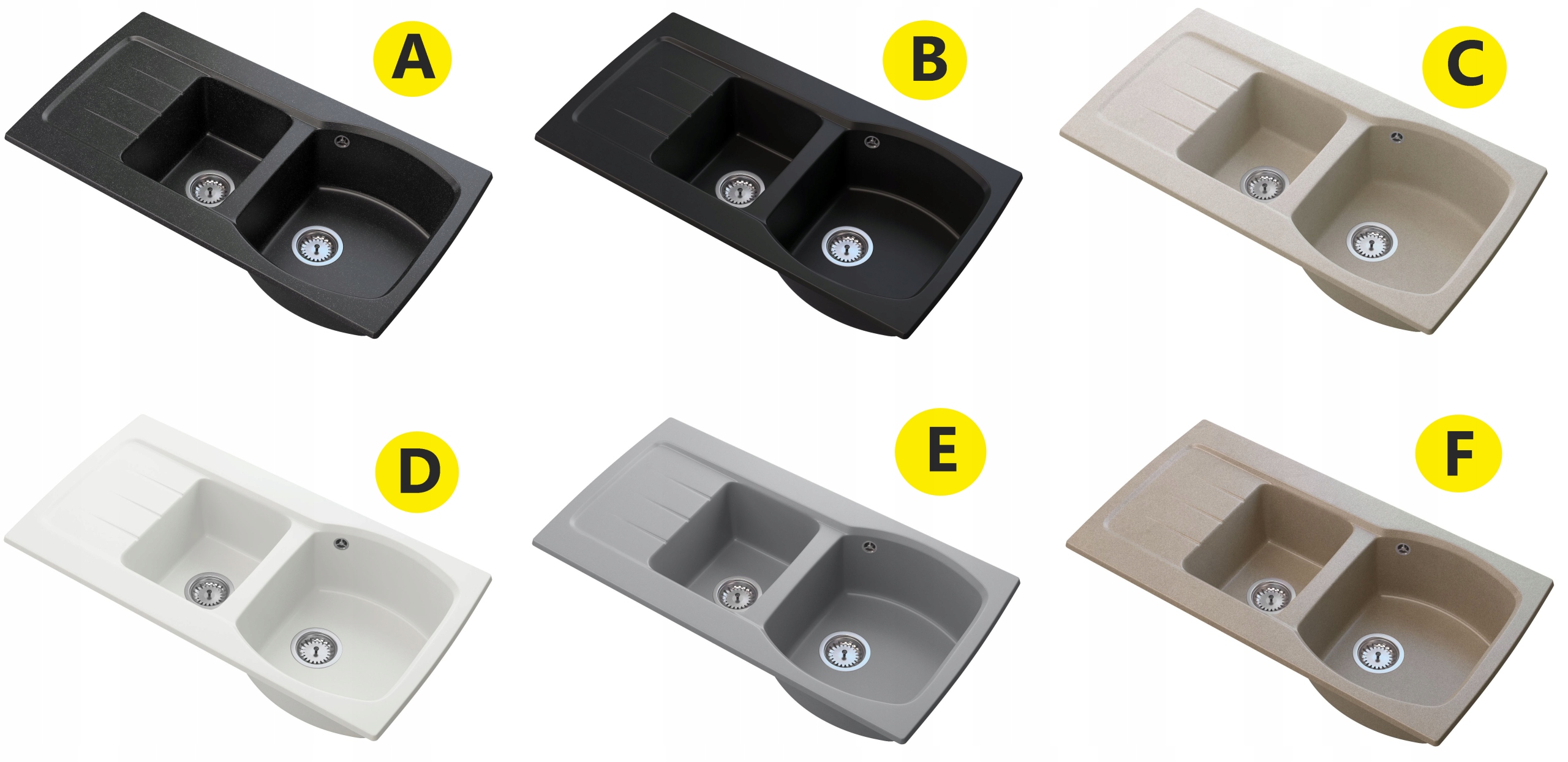 bogata gama kolorystyczna pozwala idealnie dopasować kolor zlewozmywaka do blatu, jak również pozostałego wyposażenia kuchennego