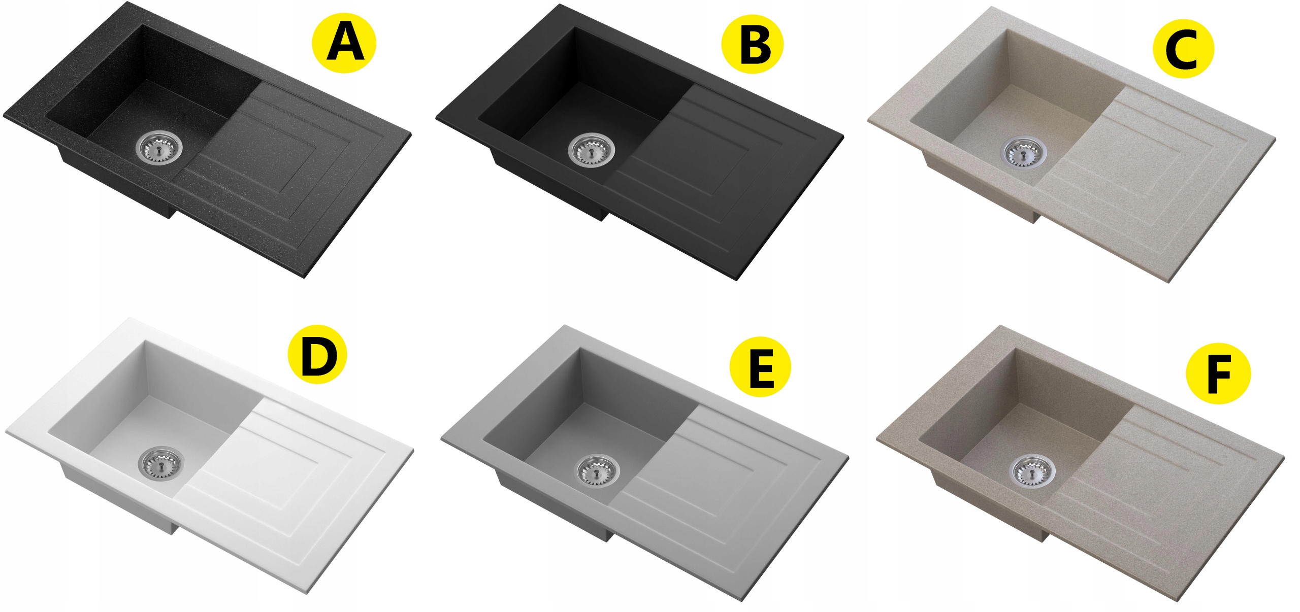 bogata gama kolorystyczna pozwala idealnie dopasować kolor zlewozmywaka do blatu, jak również pozostałego wyposażenia kuchennego