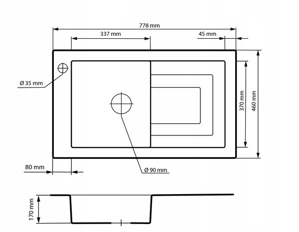 Precyzja zachowana podczas produkcji pozwala na idealne dopasowanie zlewozmywaka do szafki o rozmiarze od 45 cm. Konstrukcja syfonu pozwala na zachowaniewiększej ilości miejsca pod blatem roboczym. Dzięki temu zyskasz dodatkową przestrzeń na pojemnik na odpady lub akcesoria kuchenne. Syfon posiada system antyprzelewowy, a także możliwość podłączenia pralki lub zmywarki. W celu ułatwienia instalacji do zlewu dołączona jest instrukcja montażu.