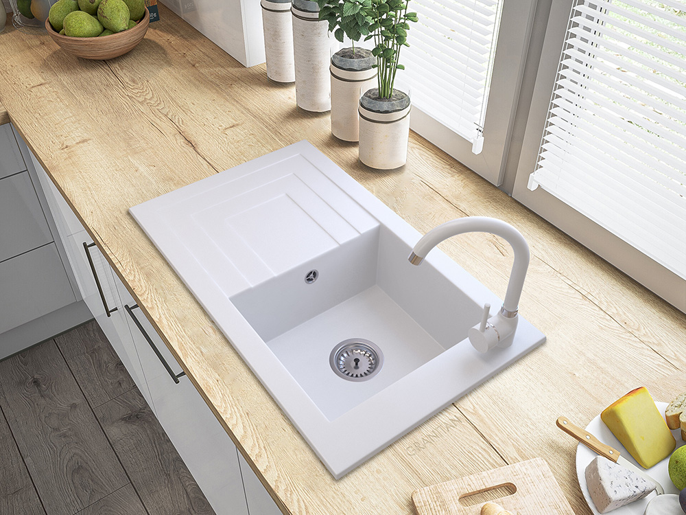 Przemyślany projekt pozwala wykorzystać do maksimum możliwości zlewu i sprawić, że jego eksploatacja będzie niezwykle funkcjonalna. Wygodna komora wykazuje wysoką wytrzymałość na codzienne zagrożenia takie jak: zarysowania, przebarwienia czy szok termiczny (wysokie i niskie temperatury wody). Bogata gama kolorystyczna umożliwia idealne połączenie faktury i barwy zlewu z blatem kuchennym, a także pozostałym wyposażeniem. Model pozwala na indywidualną personalizację otworów w zlewie – począwszy od baterii kuchennej, poprzez dozownik do płynu czy pokrętło syfonu automatycznego.