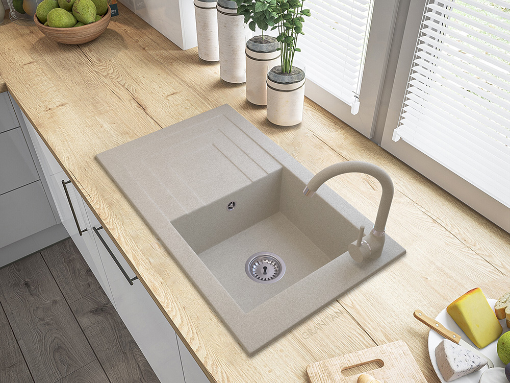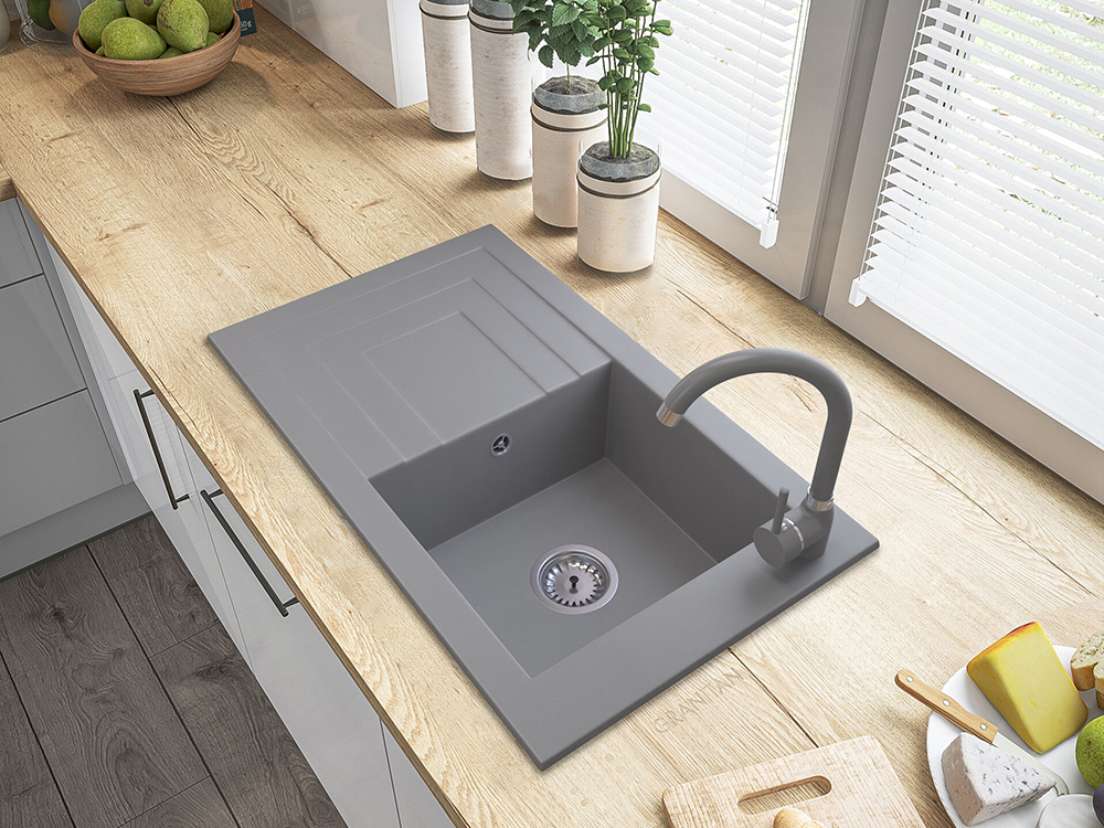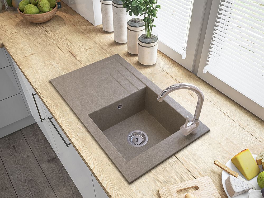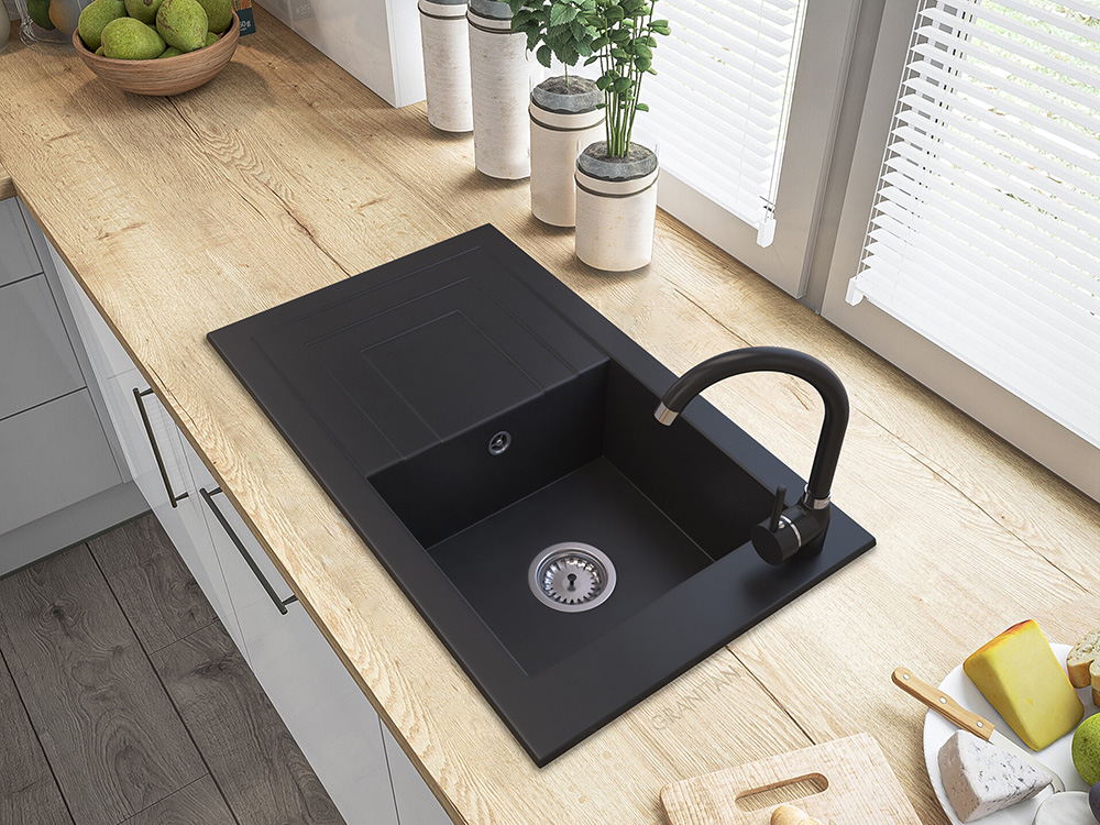 Zlewozmywak granitowy to produkt, którego ponadczasowy, a przede wszystkim uniwersalny wygląd daje wiele możliwości aranżacyjnych. Jego kształt i rozmiar bez trudu dopasujemy do wnętrza kuchennego w taki sposób, aby w pełni cieszyć się z jego możliwości. Zachowane proporcje nie przytłaczają wnętrza, a minimalistyczna forma pozwala wprowadzić elegancką harmonię do przestrzeni kuchennej. Projekt modelu uwzględnia możliwie dużą komorę, która zapewnia komfort podczas codziennego zmywania i sprawia, że staje się ono przyjemnością. Indywidualna personalizacja pozwala na umieszczenie dodatkowych otworów w płaszczyźnie zlewu, które są przeznaczone na dozownik do płynu bądź pokrętło syfonu automatycznego. Dzięki temu możemy stworzyć zestaw, który sprosta oczekiwaniom nawet najbardziej wymagającego Klienta.