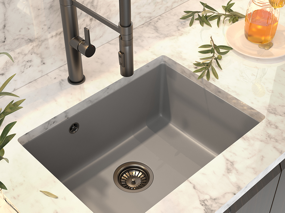 MANADO este o formă simplă, necomplicată, cu un meșteșug impresionant. Durabilitatea incredibilă a chiuvetei este garantată de îmbinarea unui mix modern de granit cu rășină poliester-acrilică, precum și de pereții îmbogățiți cu o mixtură specială granitan plusR. Rezultatul este un produs rezistent la șocuri termice (-18+280 grade), daune mecanice, precum și decolorări și zgârieturi.