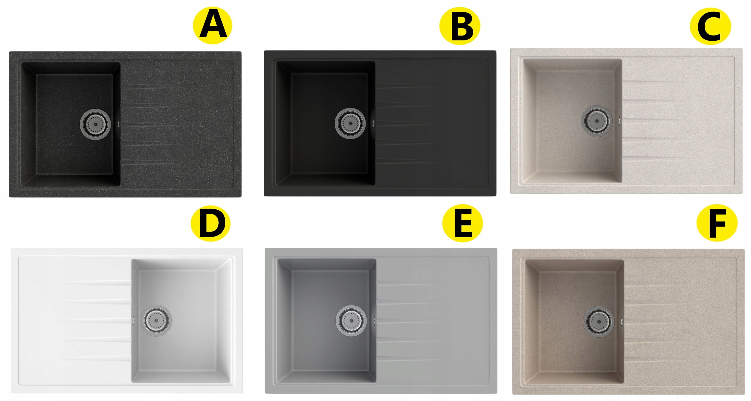 bogata gama kolorystyczna pozwala idealnie dopasować kolor zlewozmywaka do blatu, jak również pozostałego wyposażenia kuchennego