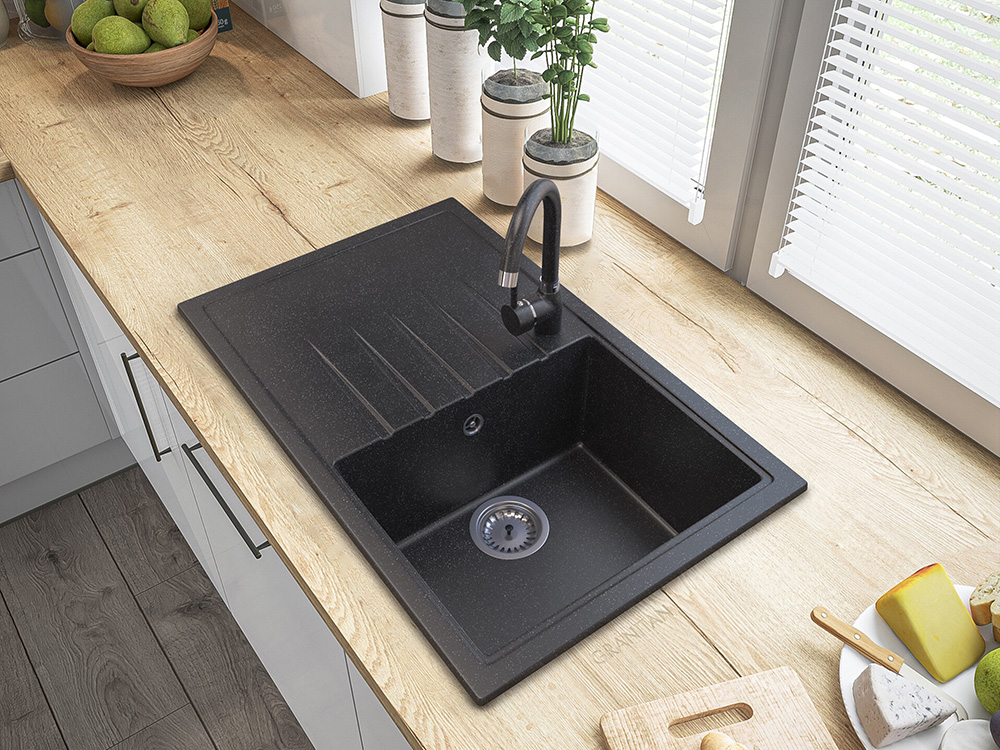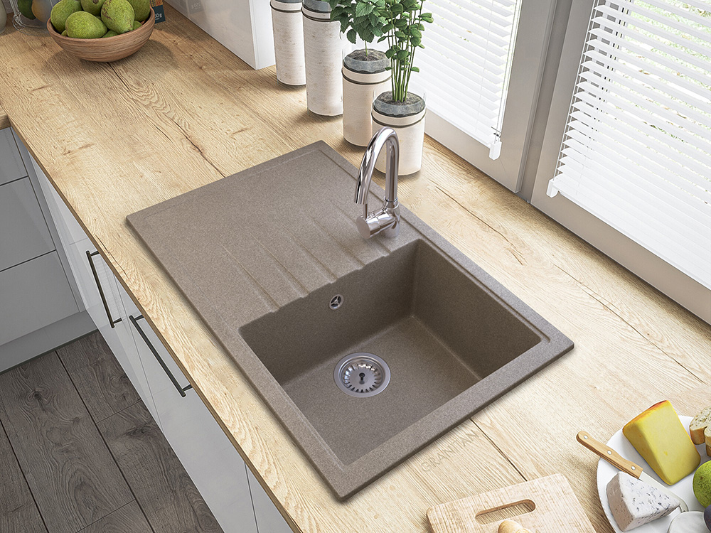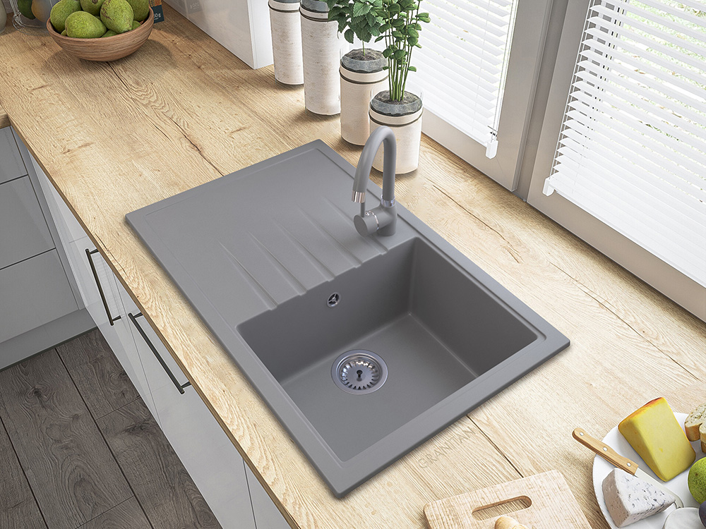 Zlewozmywak granitowy to produkt, którego ponadczasowy, a przede wszystkim uniwersalny wygląd daje wiele możliwości aranżacyjnych. Jego kształt i rozmiar bez trudu dopasujemy do wnętrza kuchennego w taki sposób, aby w pełni cieszyć się z jego możliwości. Zachowane proporcje nie przytłaczają wnętrza, a minimalistyczna forma pozwala wprowadzić elegancką harmonię do przestrzeni kuchennej. Projekt modelu uwzględnia możliwie dużą komorę, która zapewnia komfort podczas codziennego zmywania i sprawia, że staje się ono przyjemnością. Indywidualna personalizacja pozwala na umieszczenie dodatkowych otworów w płaszczyźnie zlewu, które są przeznaczone na dozownik do płynu bądź pokrętło syfonu automatycznego. Dzięki temu możemy stworzyć zestaw, który sprosta oczekiwaniom nawet najbardziej wymagającego Klienta.