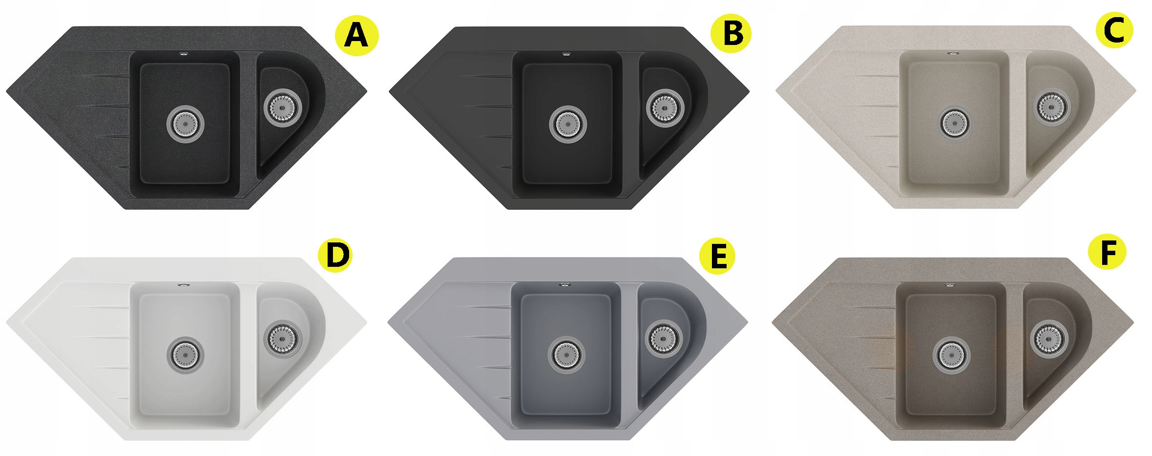 Gama variată de culori permite îmbinarea culorii chiuvetei cu blatul și restul echipamentelor de bucătărie.