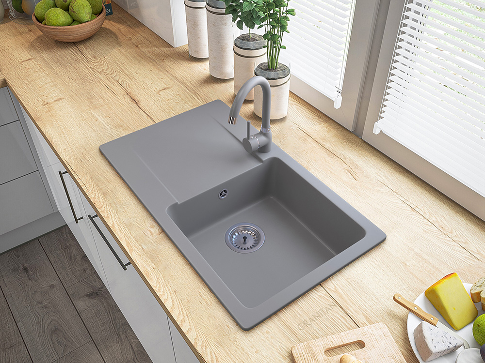 Oferim chiuveta de granit cu un singur compartiment TRÈNDY pentru dulapuri de la 45 cm, fabricată de un producător polonez. Calitatea înaltă a produselor noastre ne permite să oferim 30 de ani garanție. Beneficiile includ: