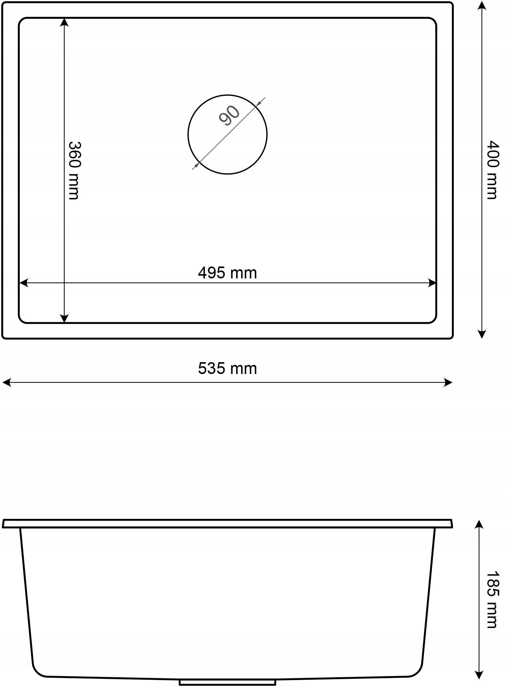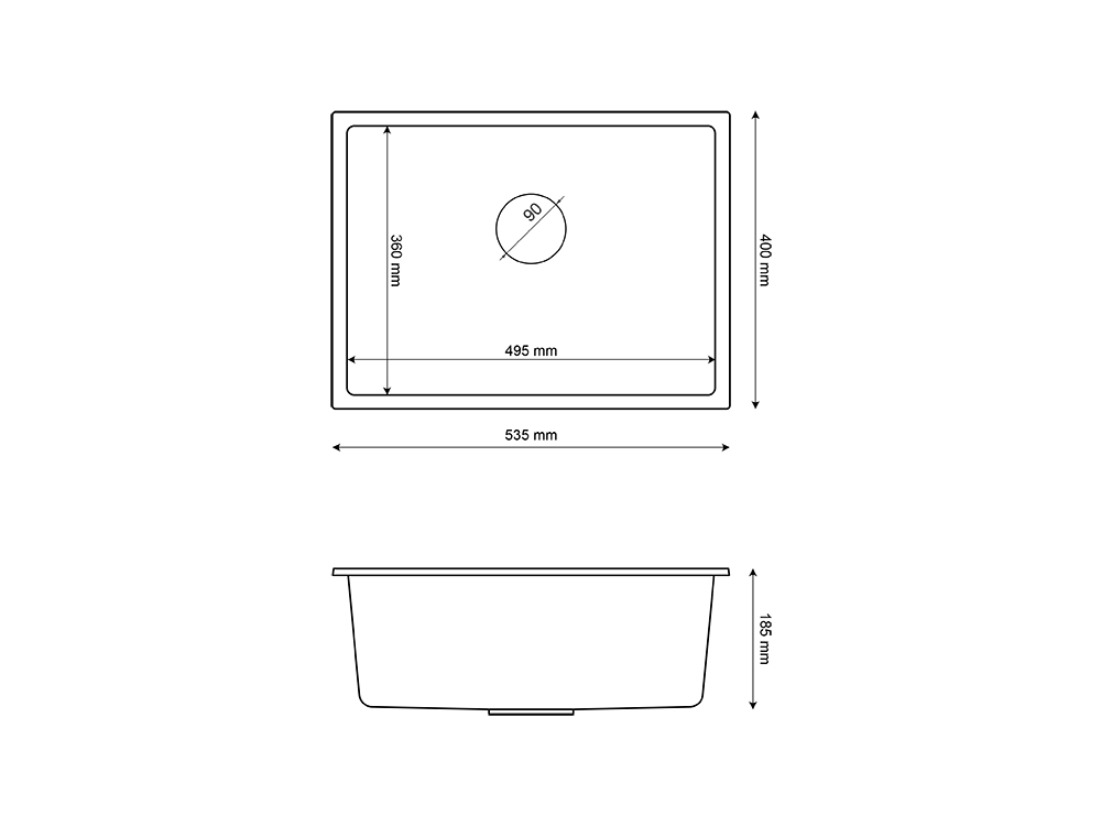 Chiuvetă granit subblat (incorporabilă) cu o singură cuvă MANADO 60