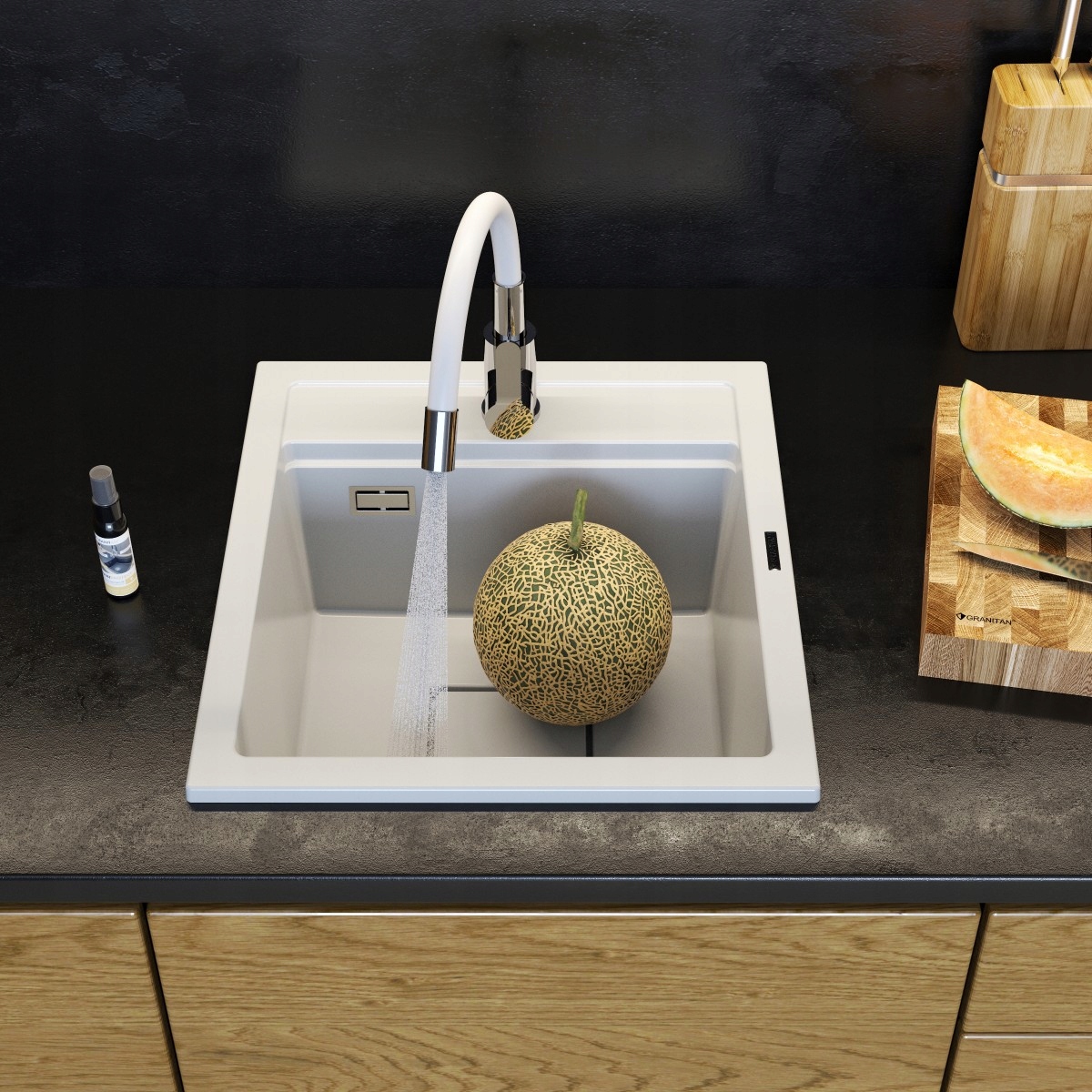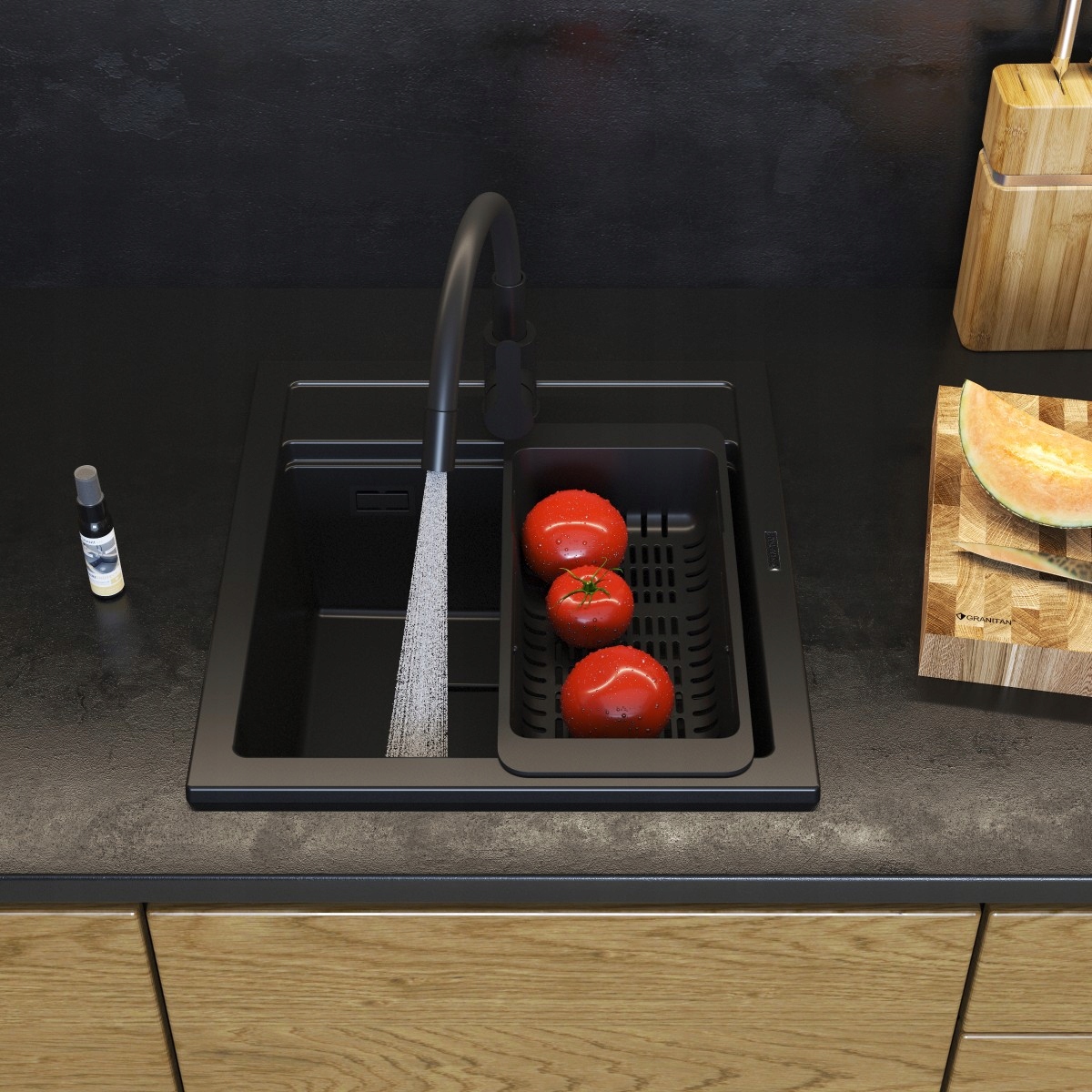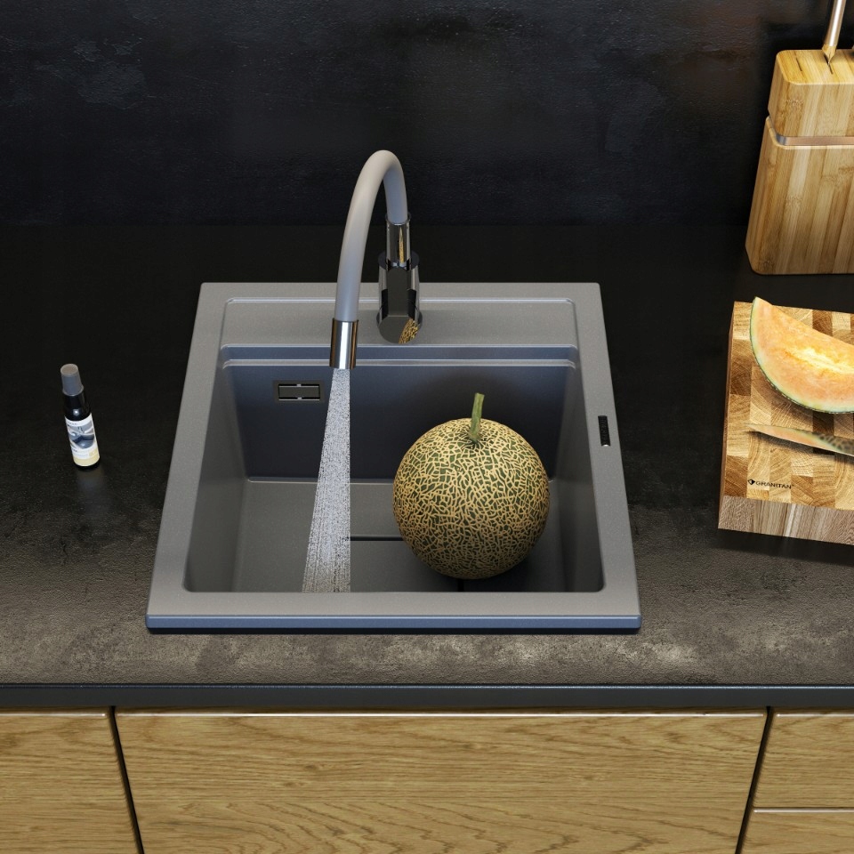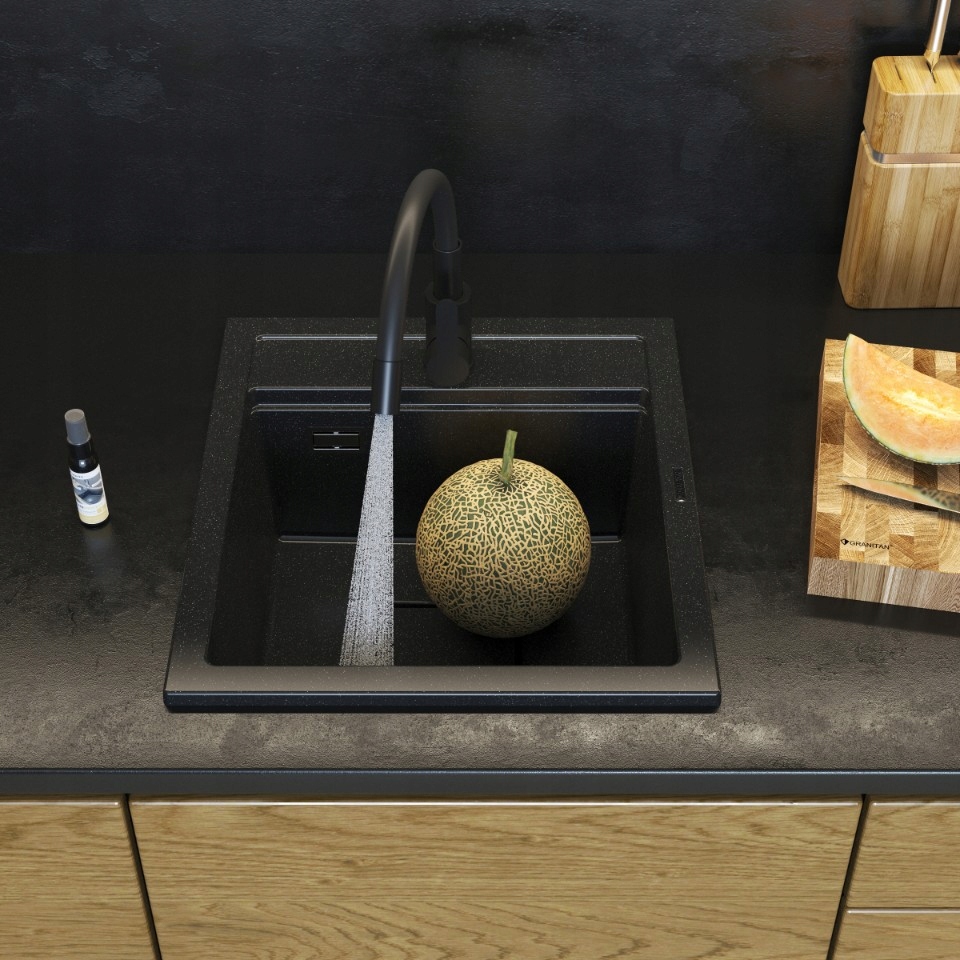Chiuvetă modernă și minimalistă din granit, care combină durabilitatea excepțională cu un design elegant. Fabricată din compozit granit de înaltă calitate, rezistă la zgârieturi, lovituri și temperaturi ridicate. Suprafața sa mată, neagră, îi conferă un aspect luxos, perfect pentru bucătăriile moderne.