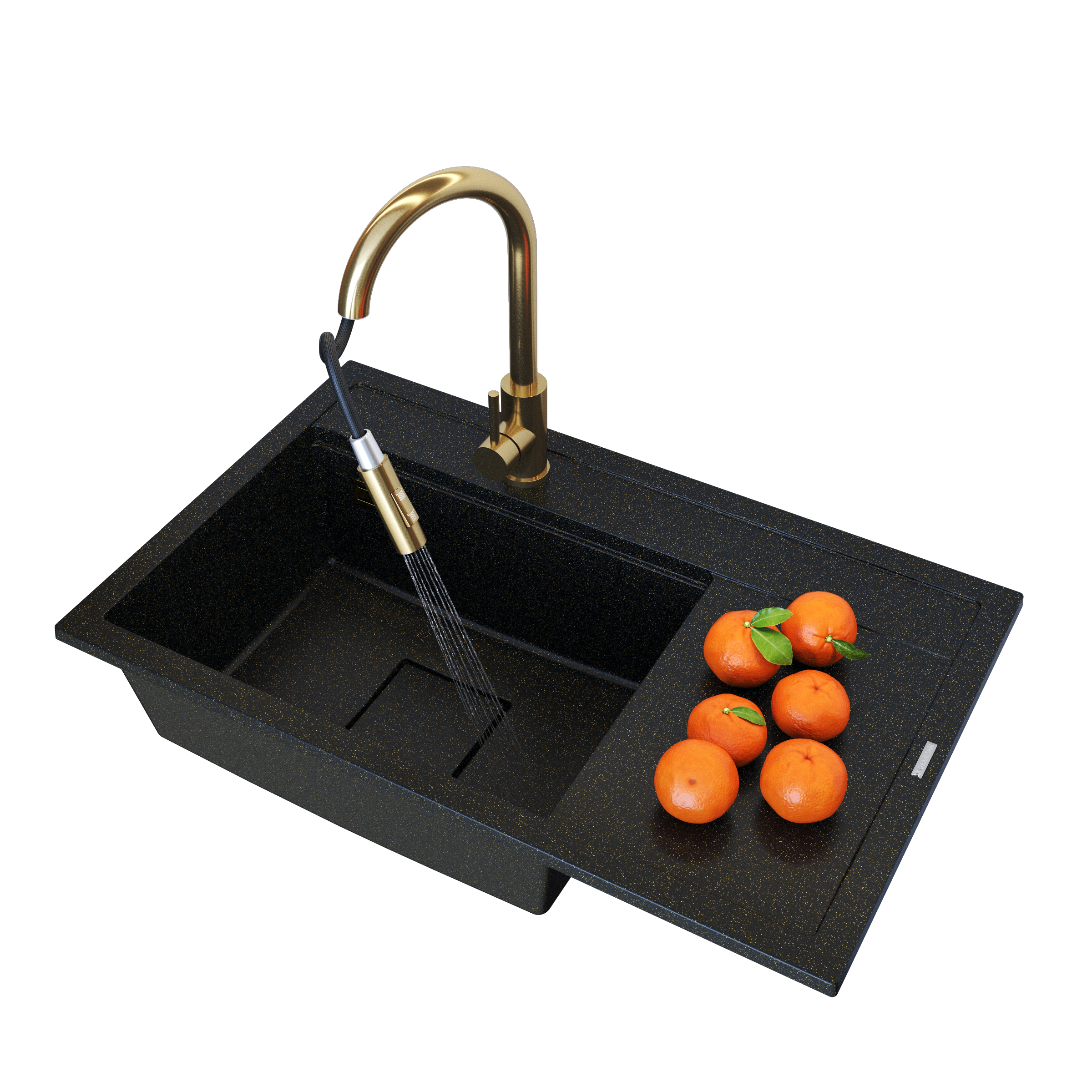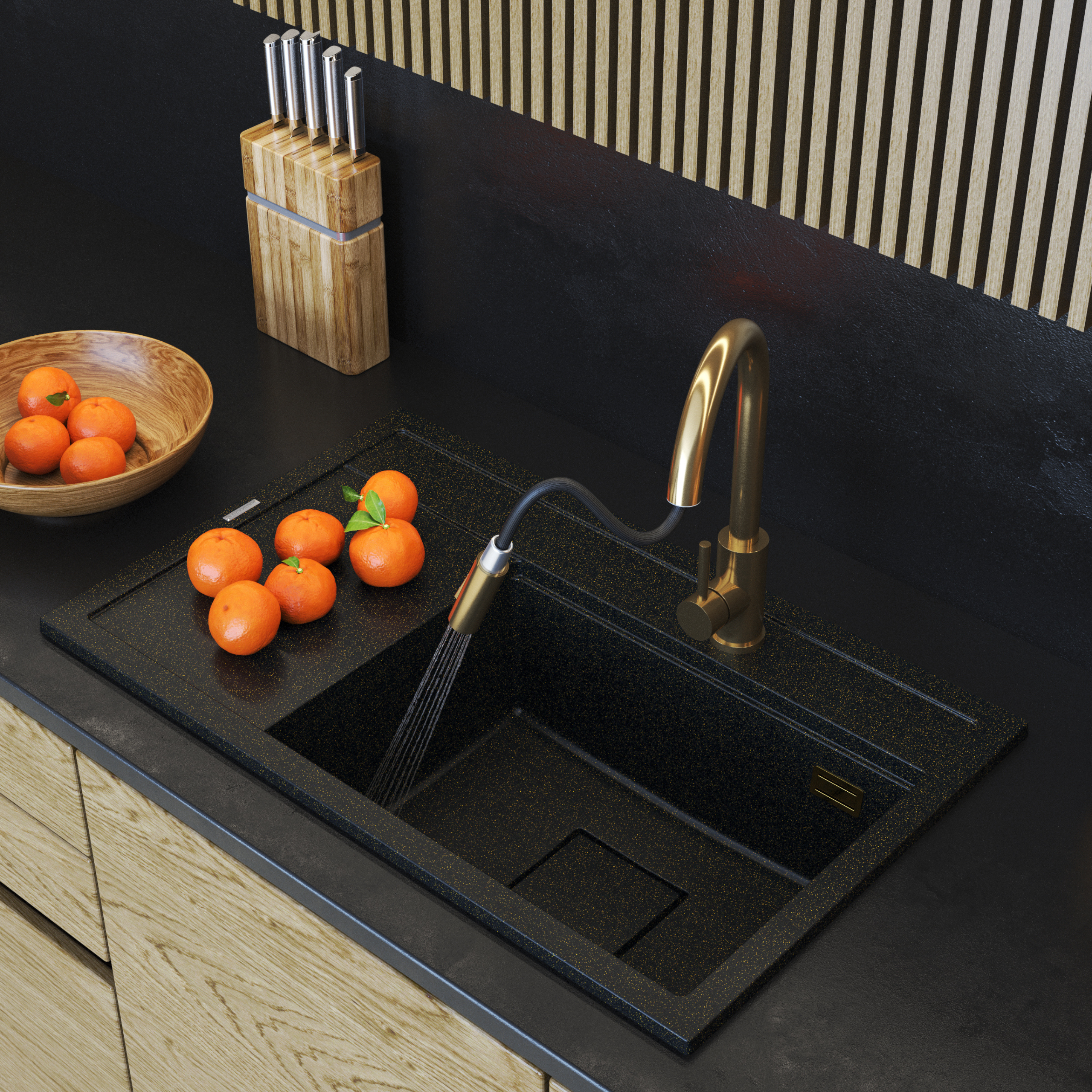 CHIUVETĂ DE GRANIT NEAGRĂ CU PARTICULE DE AUR BATERIE DE BUCĂTĂRIE SET RENDO