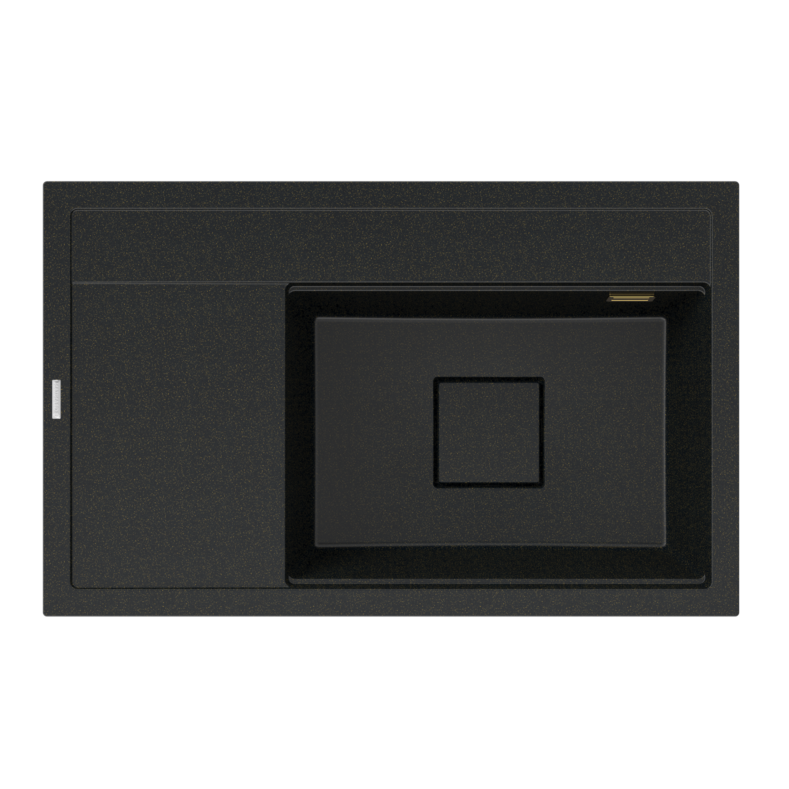 Rendo este o chiuvetă modernă de granit cu scurgător, a cărei suprafață este completată de un capac de design pentru sifonul de scurgere.