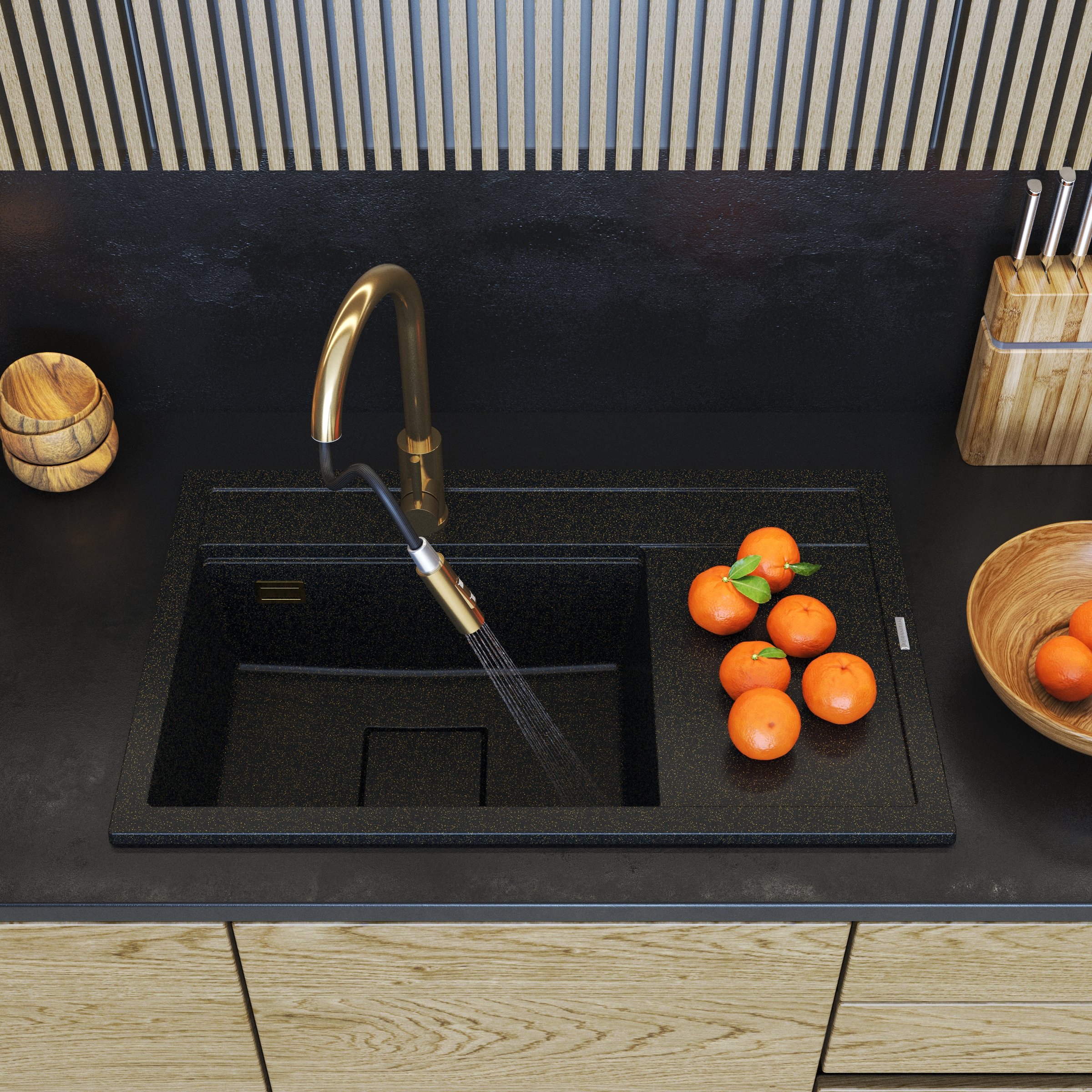 CHIUVETĂ DE GRANIT NEAGRĂ CU PARTICULE DE AUR BATERIE DE BUCĂTĂRIE SET RENDO