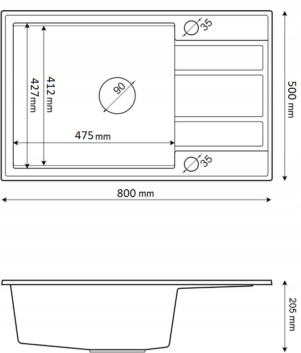 Chiuvetă de granit cu o singură cuvă și scurgător, care prin forma sa minimalistă nu încarcă vizual interiorul. Forma simetrică a chiuvetei îi conferă un aspect estetic, iar calitatea execuției crește confortul în utilizarea de zi cu zi.