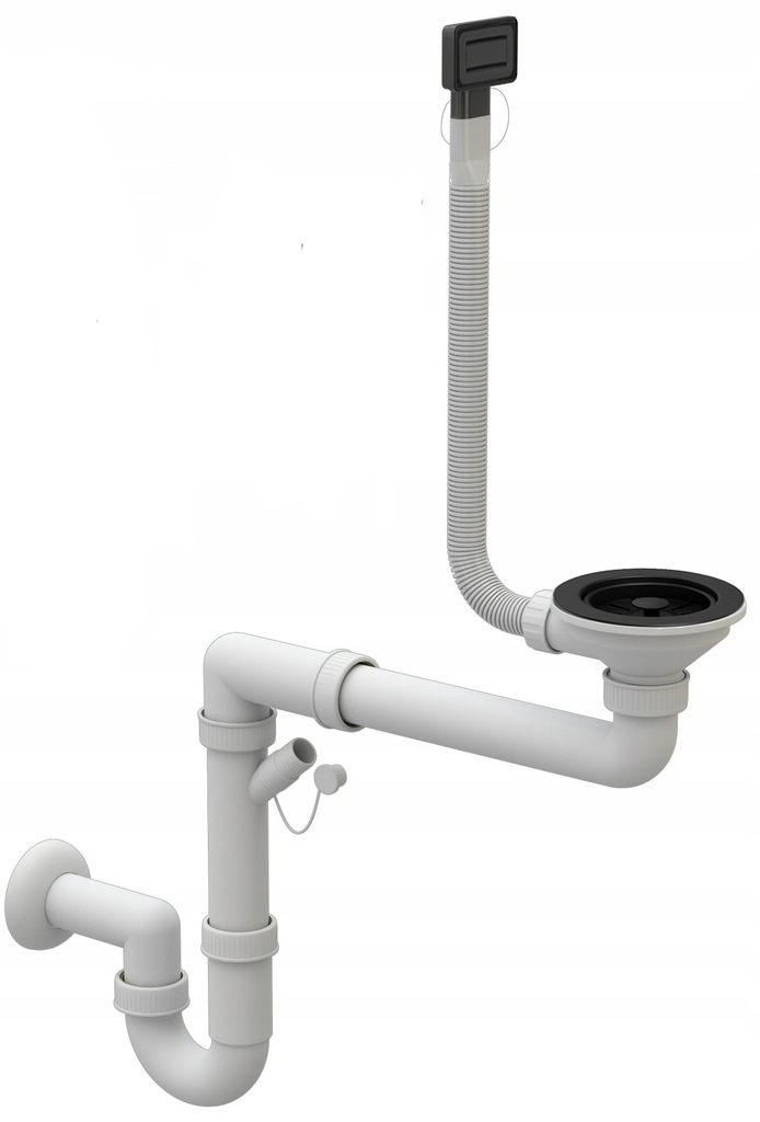 Chiuveta este disponibilă cu un sifon manual, cu posibilitatea de conectare la mașina de spălat rufe sau vase.