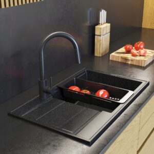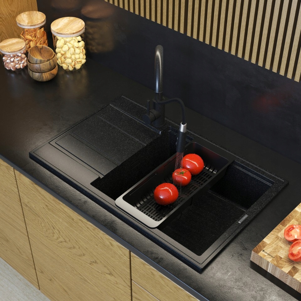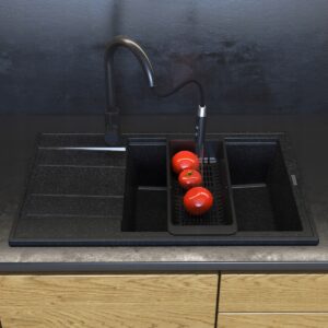 Chiuvetă de granit cu o singură cuvă și scurgător, care prin forma sa minimalistă nu încarcă vizual interiorul. Forma simetrică a chiuvetei îi conferă un aspect estetic, iar calitatea execuției crește confortul în utilizarea de zi cu zi.