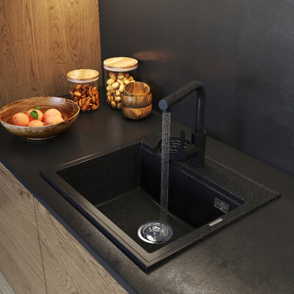 Chiuvetă din granit FOXAL de culoare NEAGRĂ CU PISTRUI