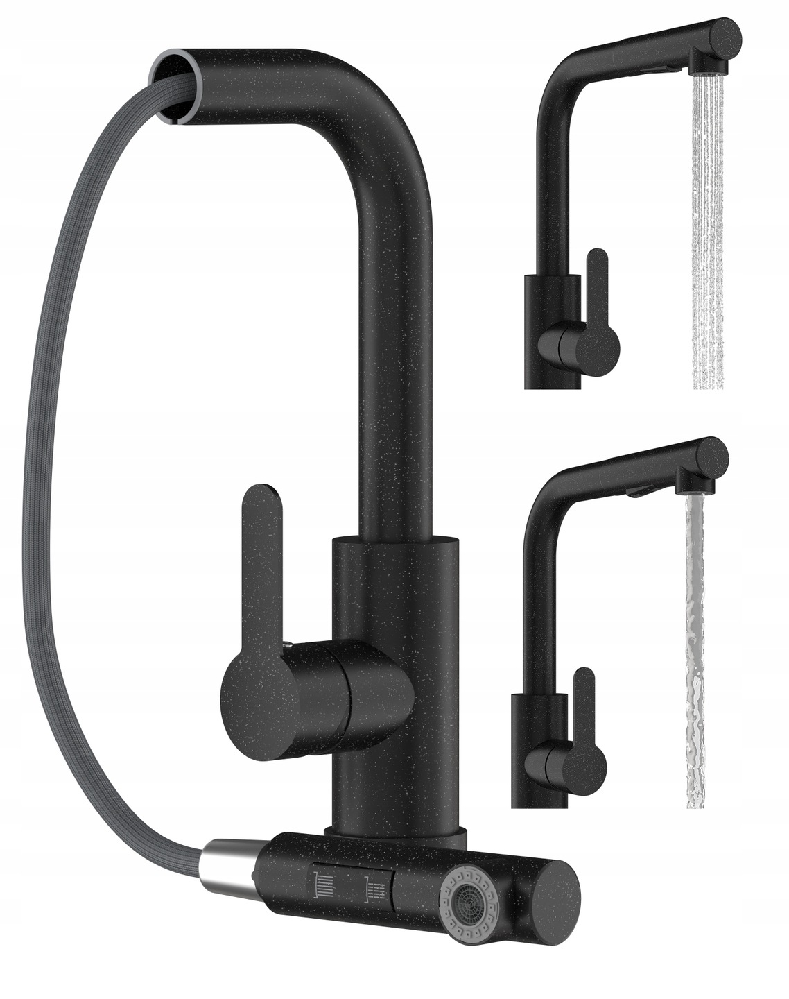 2 BATERIE DE BUCĂTĂRIE CU DUȘ EXTRACTIBIL EBRO NEGRU PICURAT (GRANIT)