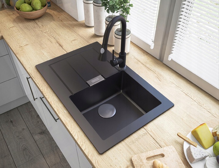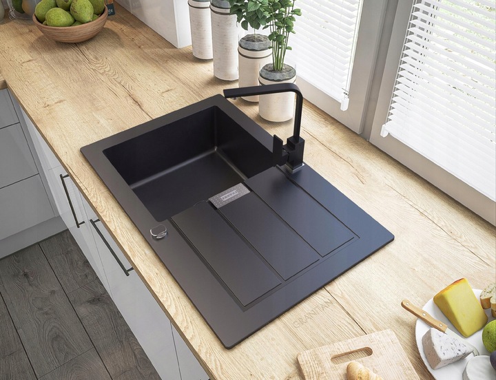 Chiuveta cu o singură cuvă FRANKE Sirius SID în culoarea onyx este utilă în orice bucătărie și, datorită rezistenței sale excepționale, și în spațiile gospodărești. Realizată din material SMC acoperit cu PiMC, chiuveta este durabilă. Materialul este protejat împotriva temperaturilor ridicate sau a produselor chimice. De asemenea, prezintă rezistență la zgârieturi sau abraziuni. Acest lucru îi asigură o funcționare fiabilă pe termen lung. Chiuveta facilitează pregătirea zilnică a alimentelor și spălarea veselii. Datorită scurgătorului, nu vei mai avea nevoie de echipamente suplimentare de bucătărie. Produsul, având o tonalitate neagră, este foarte elegant, îmbunătățind aspectul mobilierului inferior al bucătăriei.