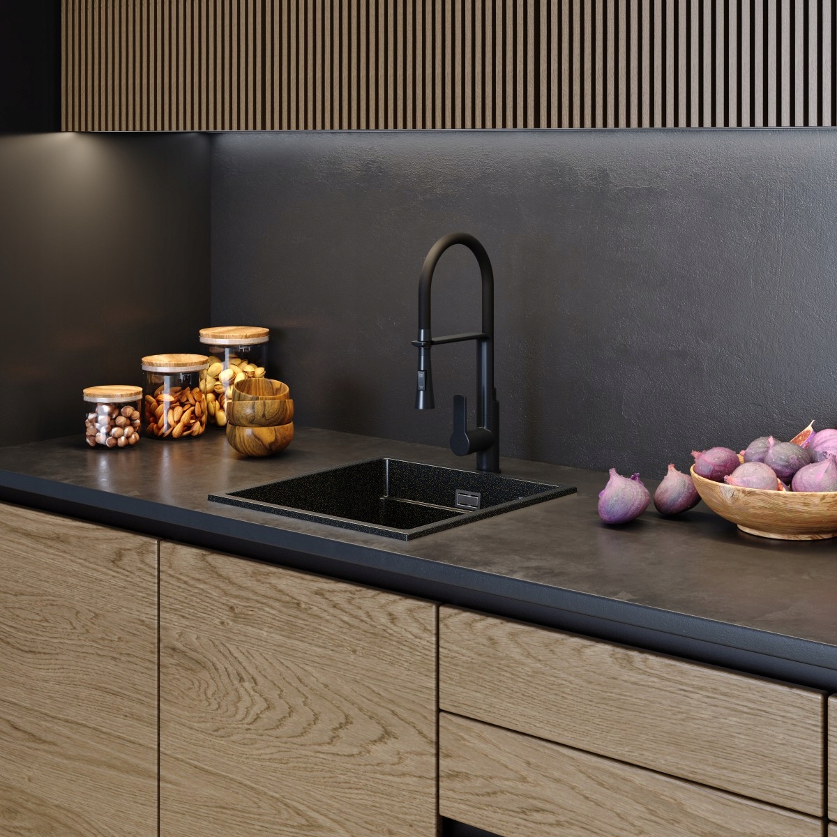EPIR reprezintă o interpretare modernă a chiuvetei cu un singur compartiment, al cărei design minimalist este completat de un sifon pătrat original. Chiuveta este concepută atât pentru montaj sub blatul de lucru, cât și pentru montaj standard pe blat.