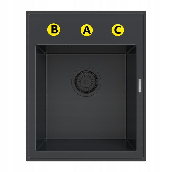 Chiuveta vine standard cu o singură gaură în poziția A.