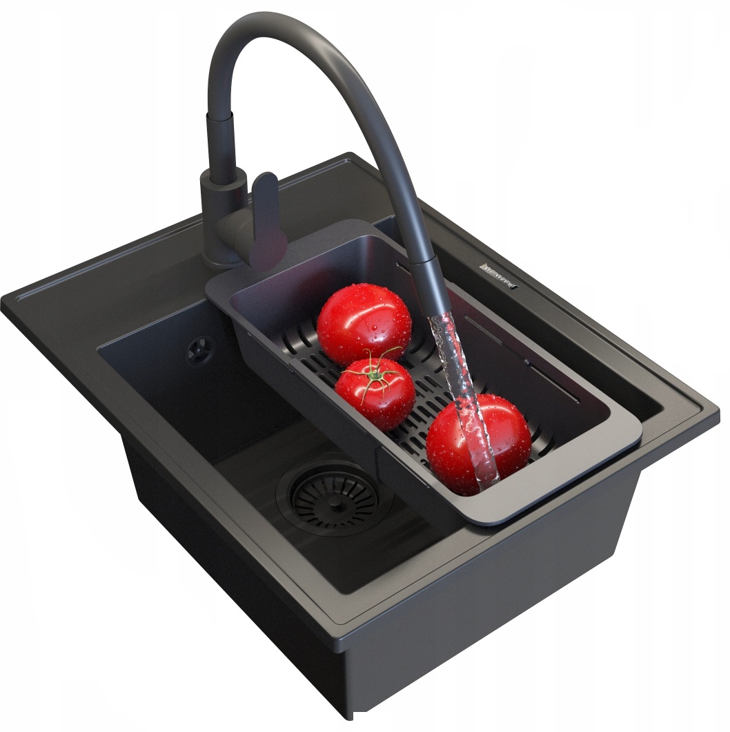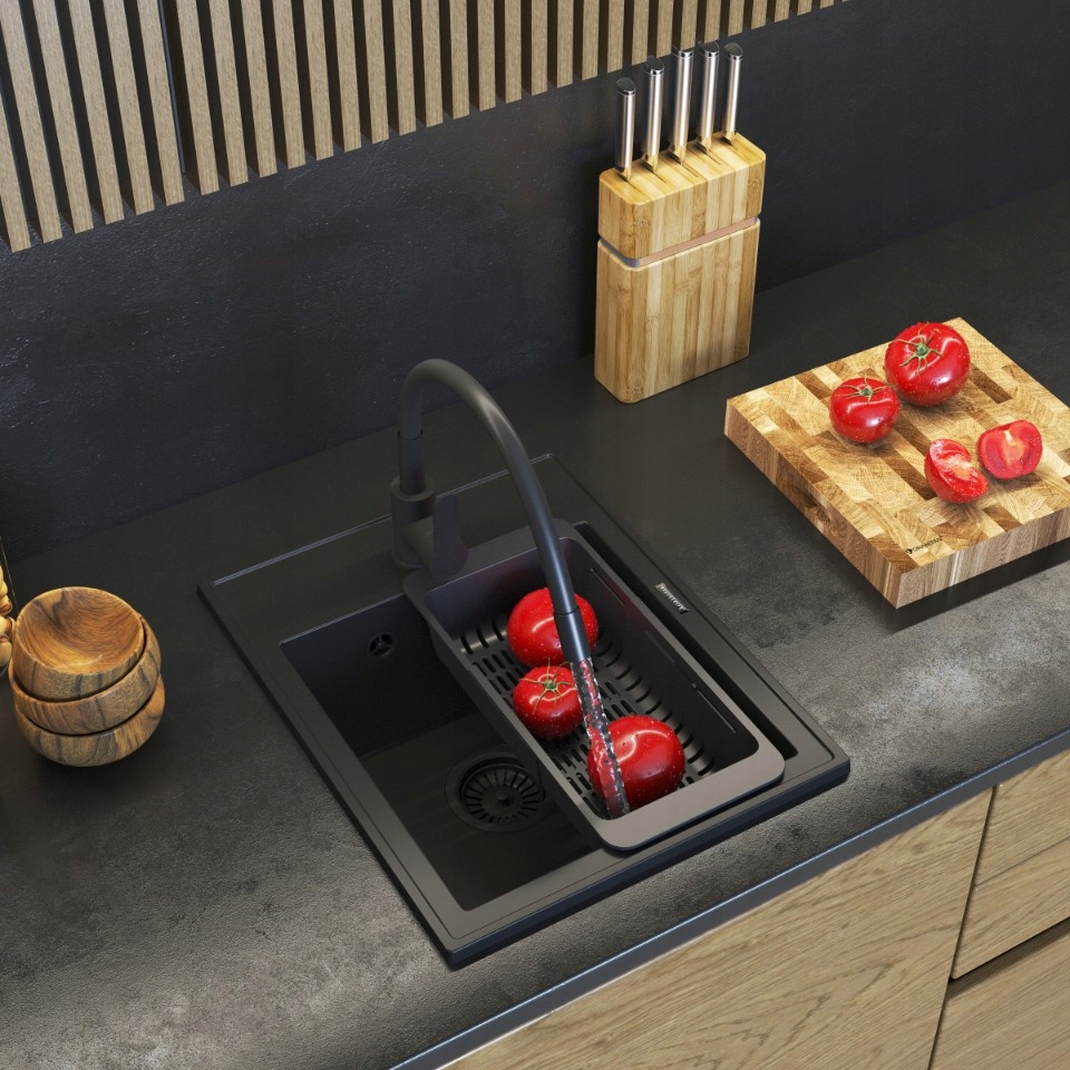 Chiuvetă Granit Neagră Baterie Bucătărie Grado Coș Set Nero